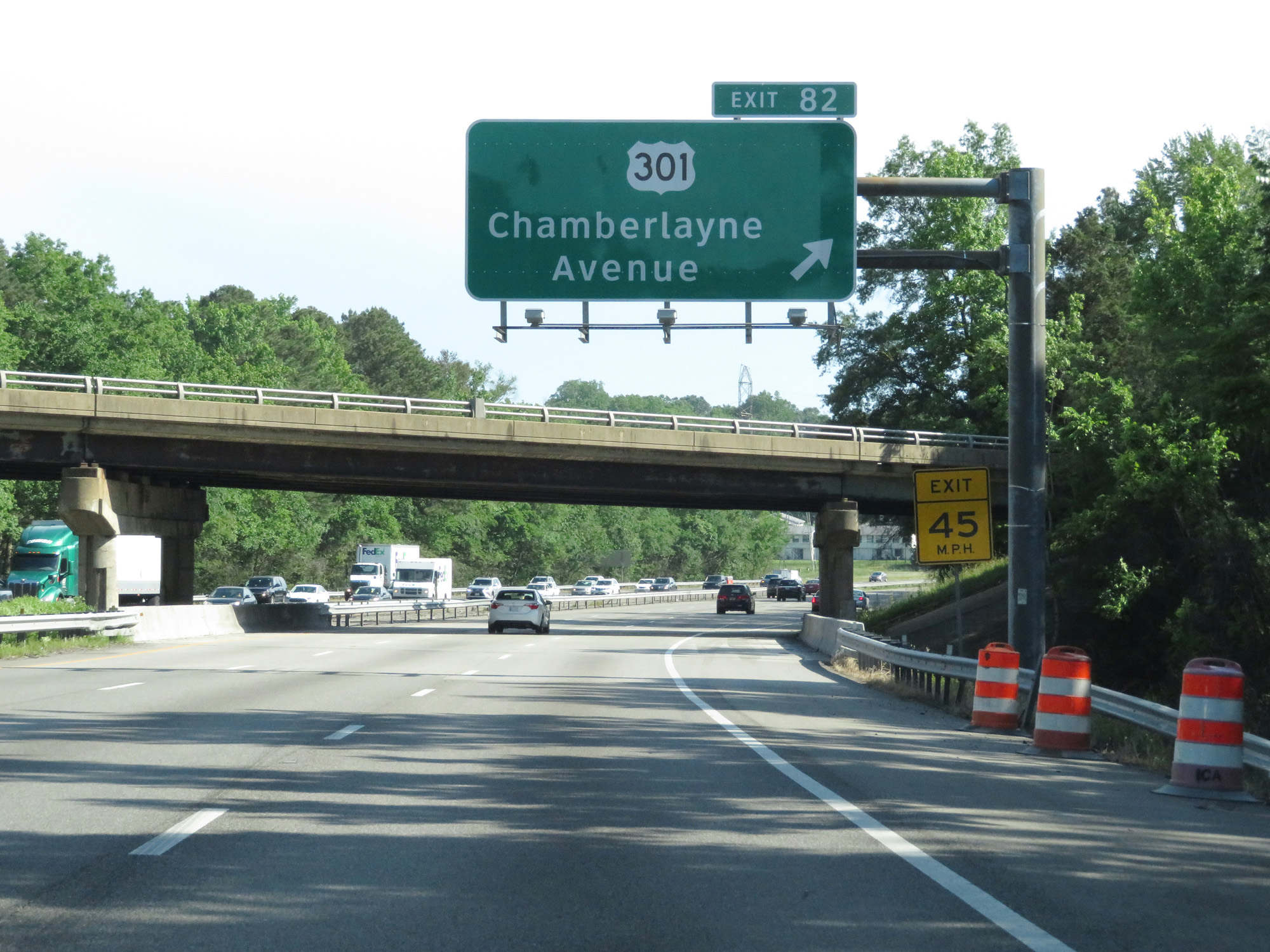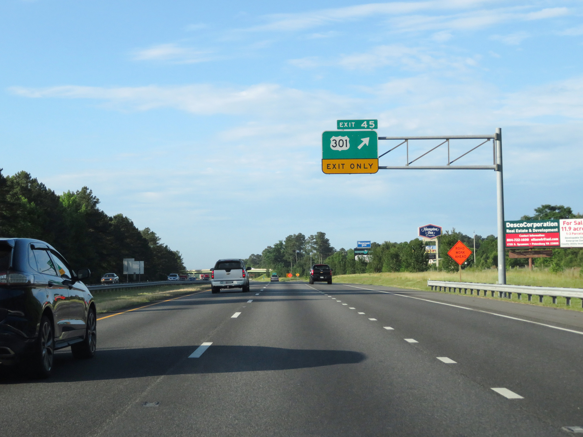 Interstate 95 South at Exit 45: US 301 (Photo taken 5/20/17). |