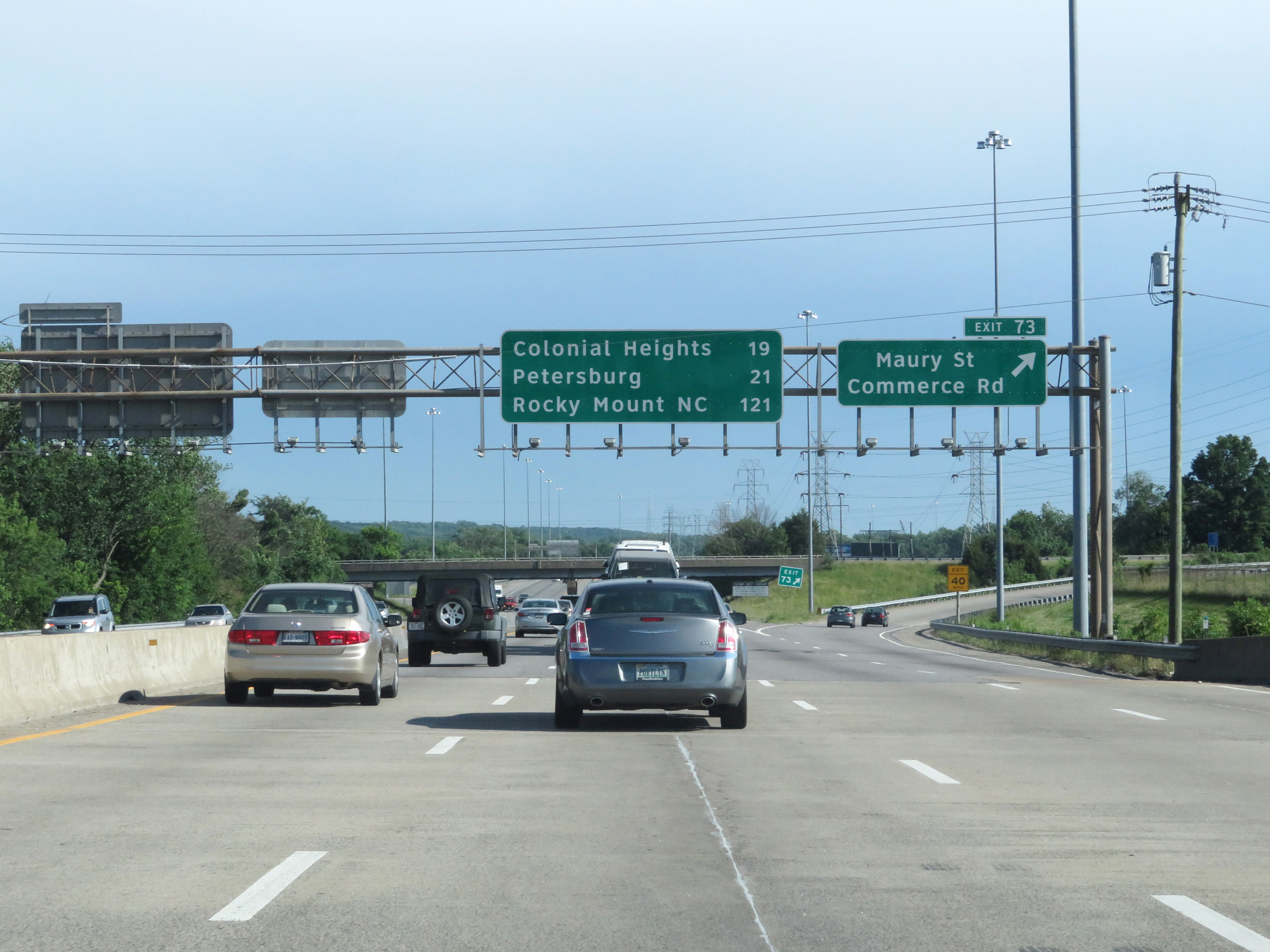 Interstate 95 South entering the Petersburg city limits. (Photo taken 5/19/17). |