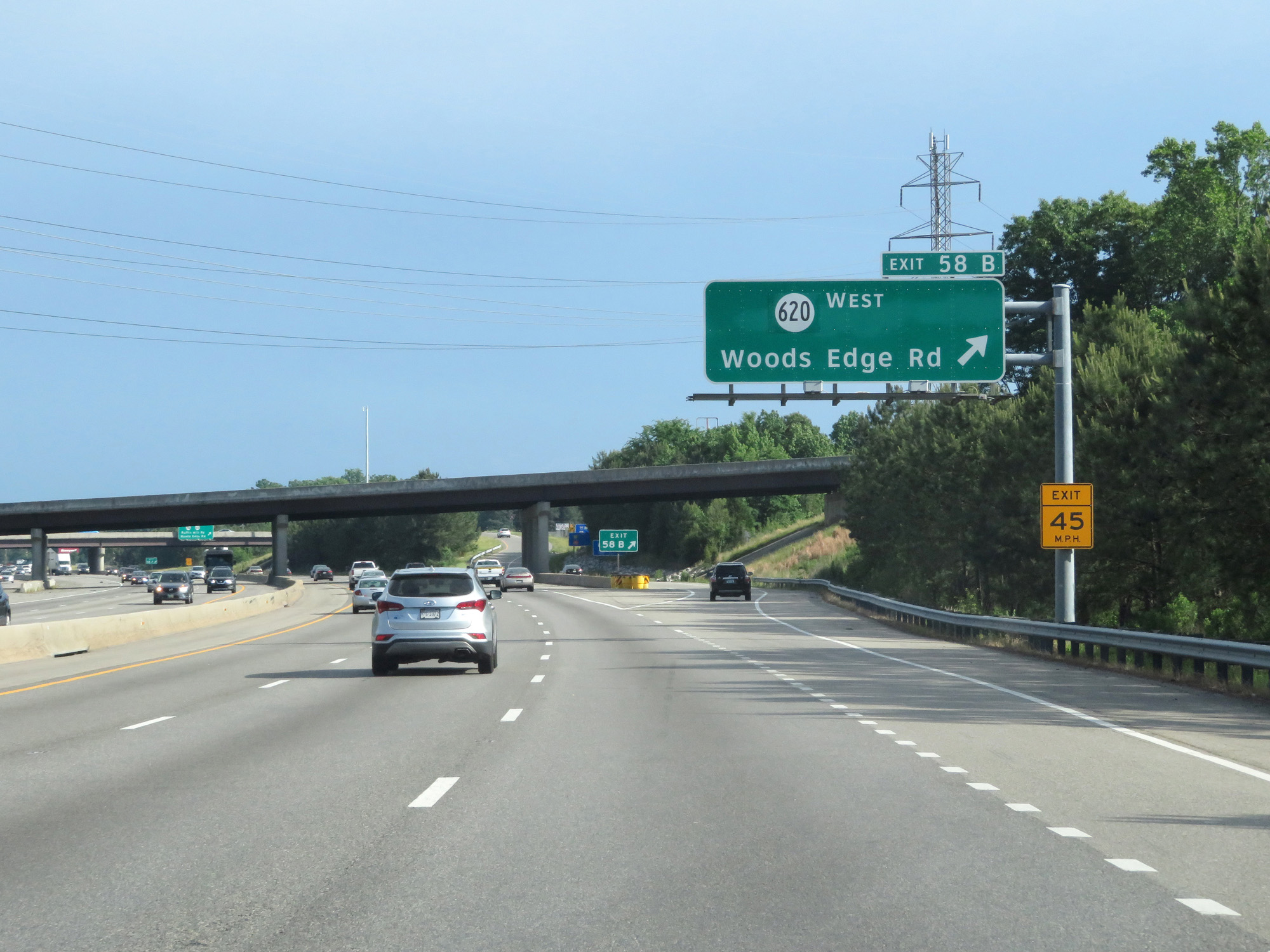 Interstate 95 South at Exit 58B: SR 620 West - Woods Edge Rd (Photo taken 5/19/17). |