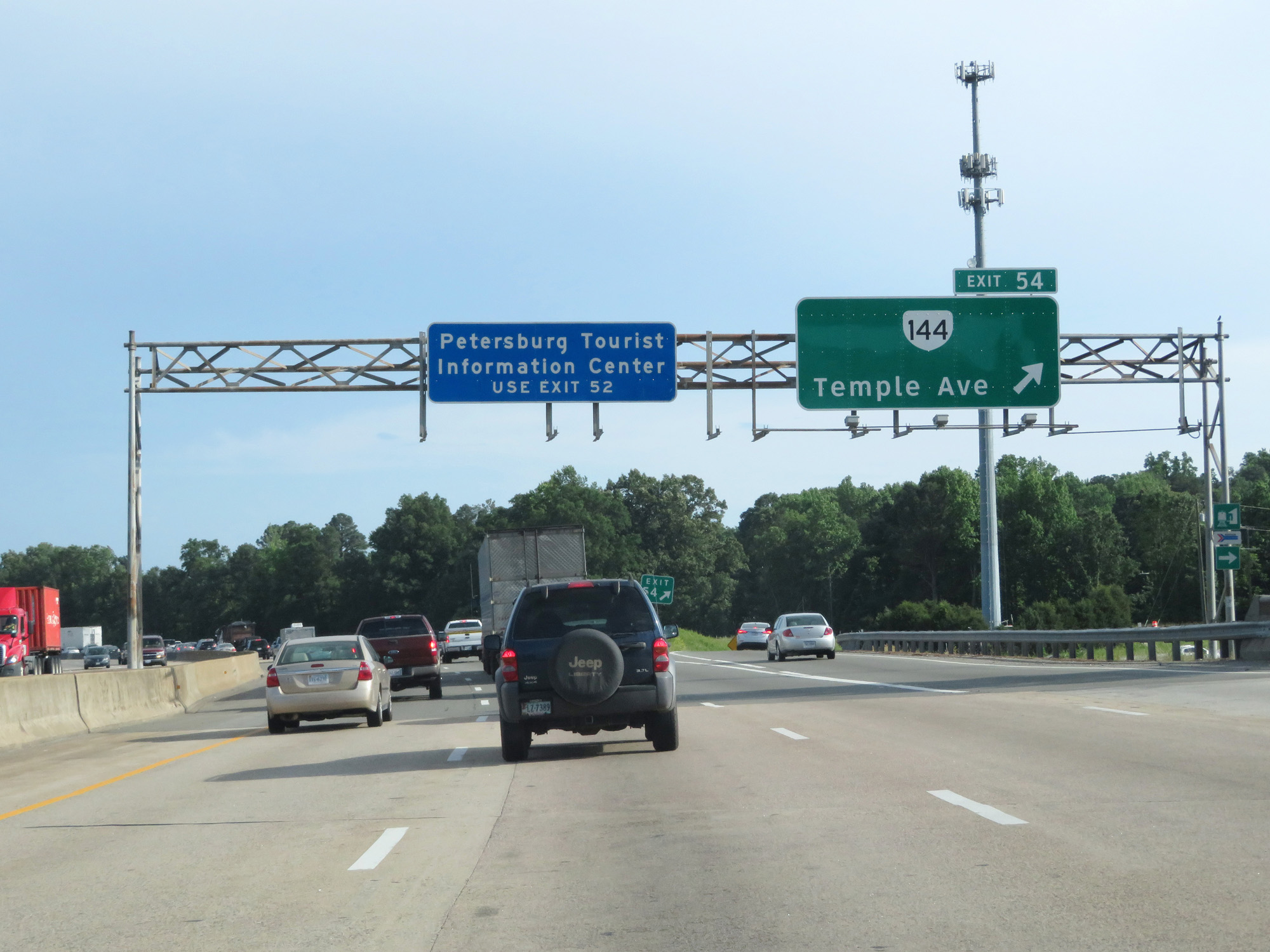 Interstate 95 South at Exit 52: Petersburg National Battlefield / Washington St / Wythe St (Photo taken 5/19/17). |