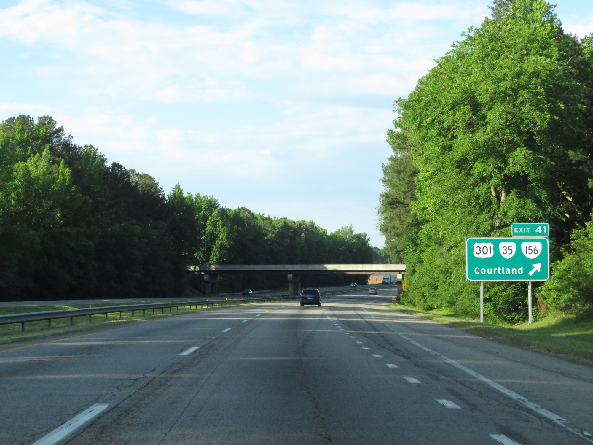 Interstate 95 South at Exit 41: US 301 / VA 35 / VA 156 - Courtland (Photo taken 5/20/17). |