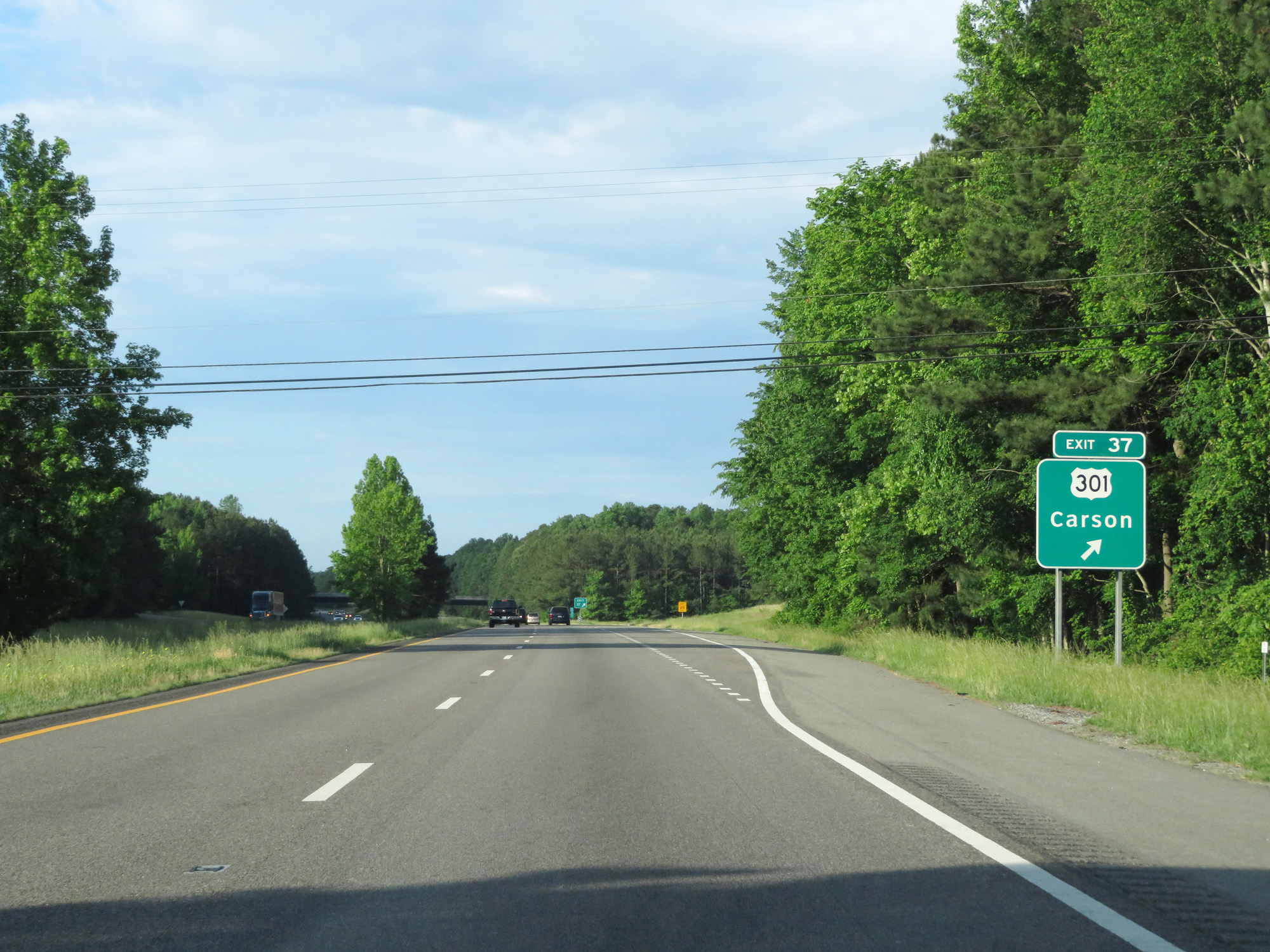 Interstate 95 South at Exit 37: US 301 - Carson (Photo taken 5/20/17). |