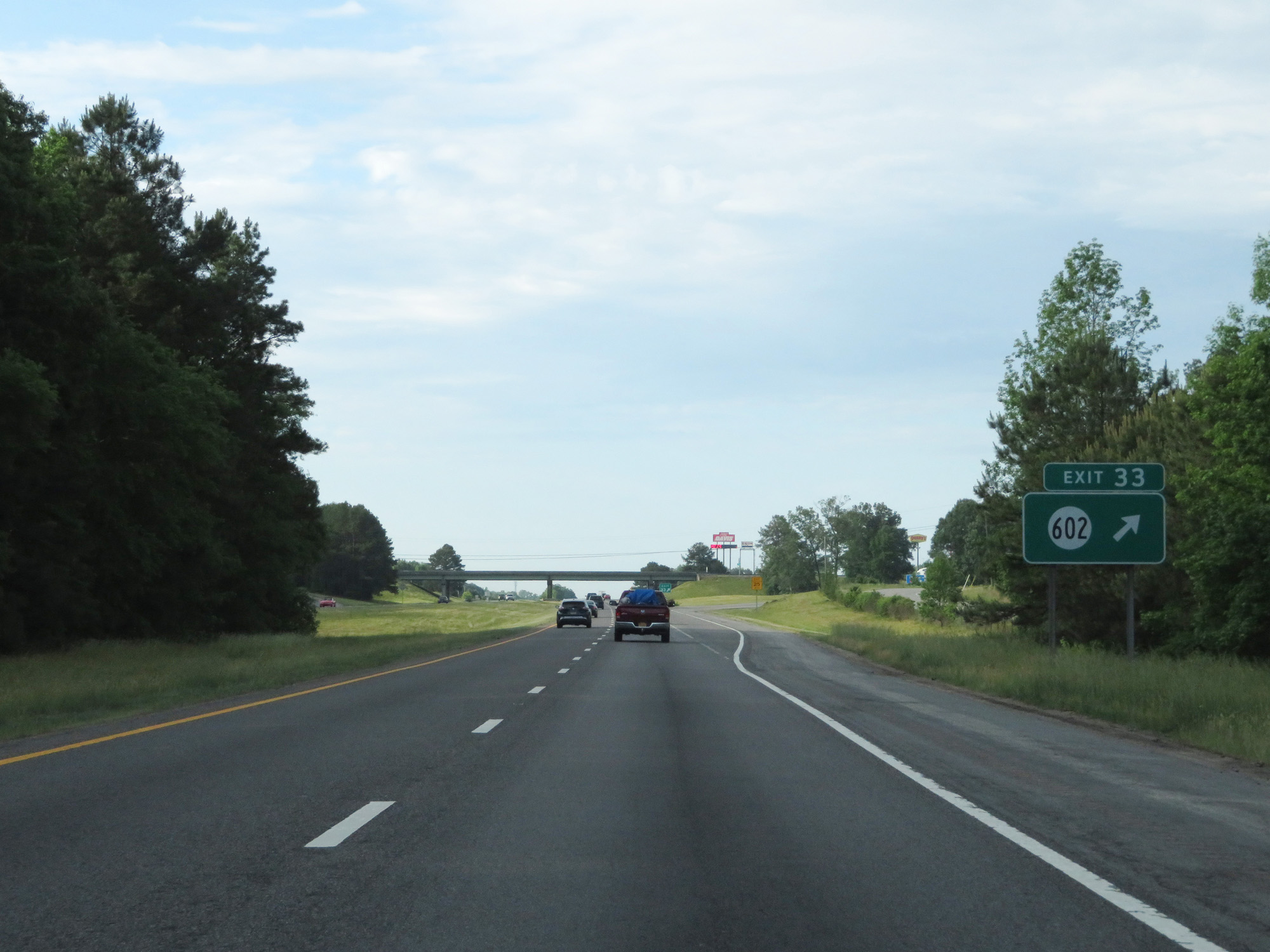 Interstate 95 South at Exit 33: SR 602 (Photo taken 5/20/17). |