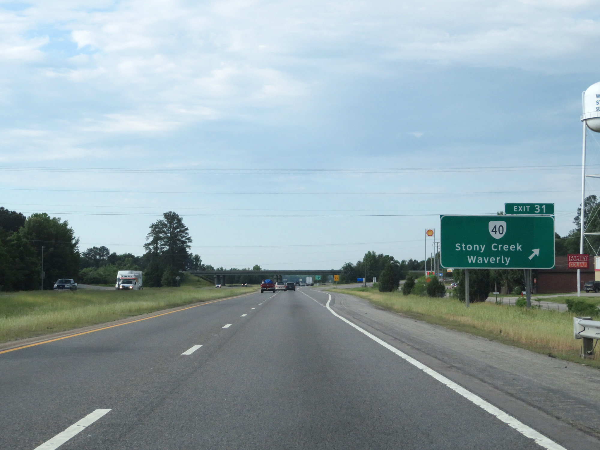 Interstate 95 South at Exit 31: VA 40 - Stony Creek / Waverly (Photo taken 5/20/17). |