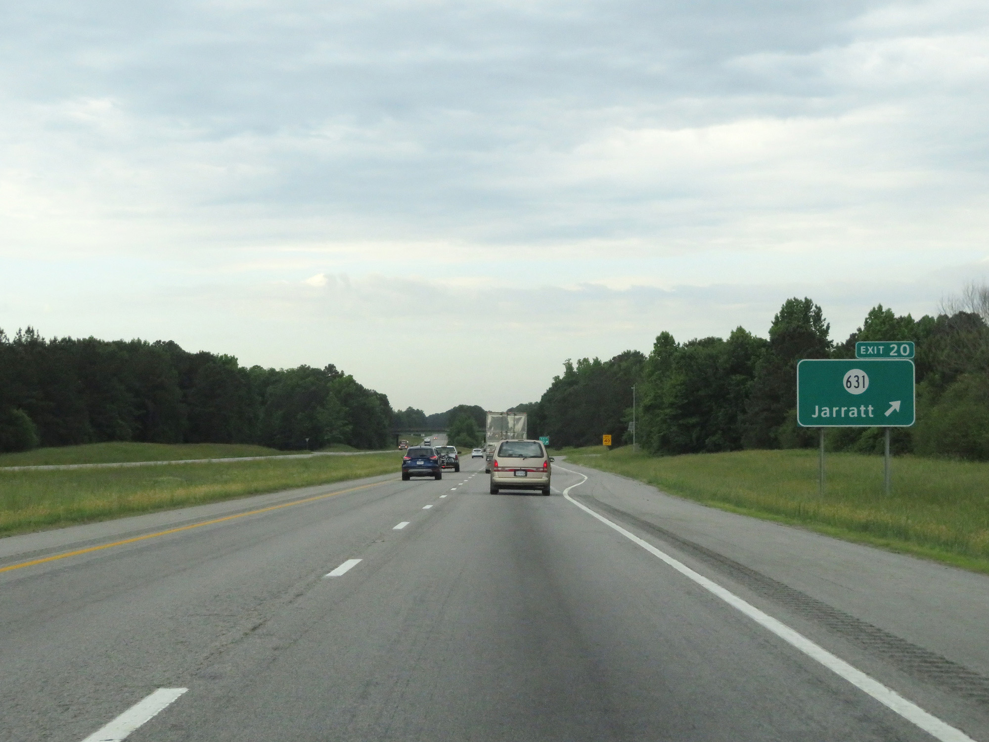 Interstate 95 South at Exit 20: SR 631 - Jarratt (Photo taken 5/20/17). |