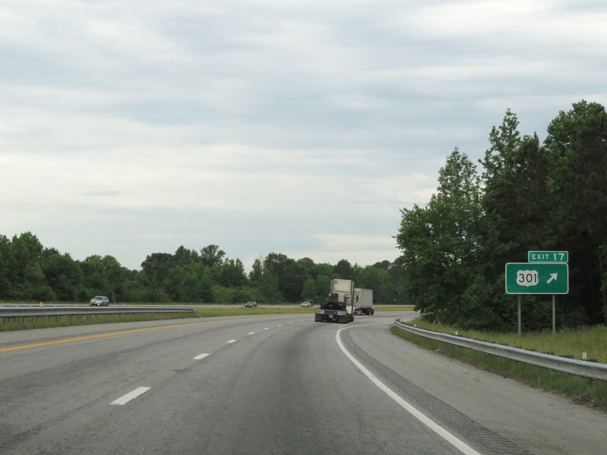 Interstate 95 South at Exit 17: US 301 (Photo taken 5/20/17). |