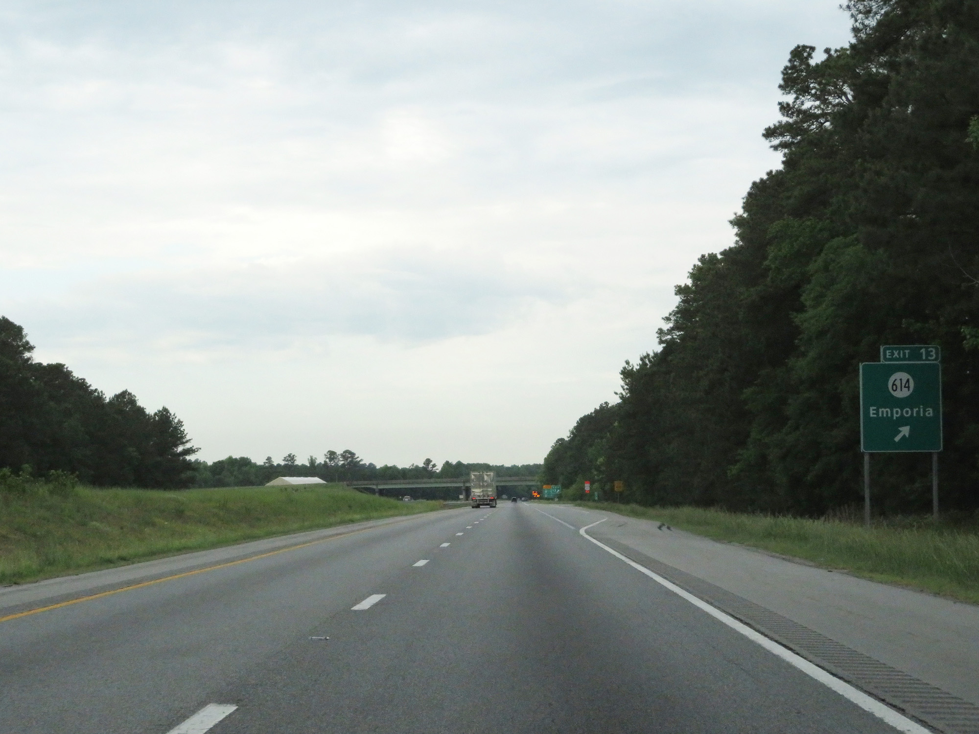 Interstate 95 South at Exit 13: SR 614 - Emporia (Photo taken 5/20/17). |