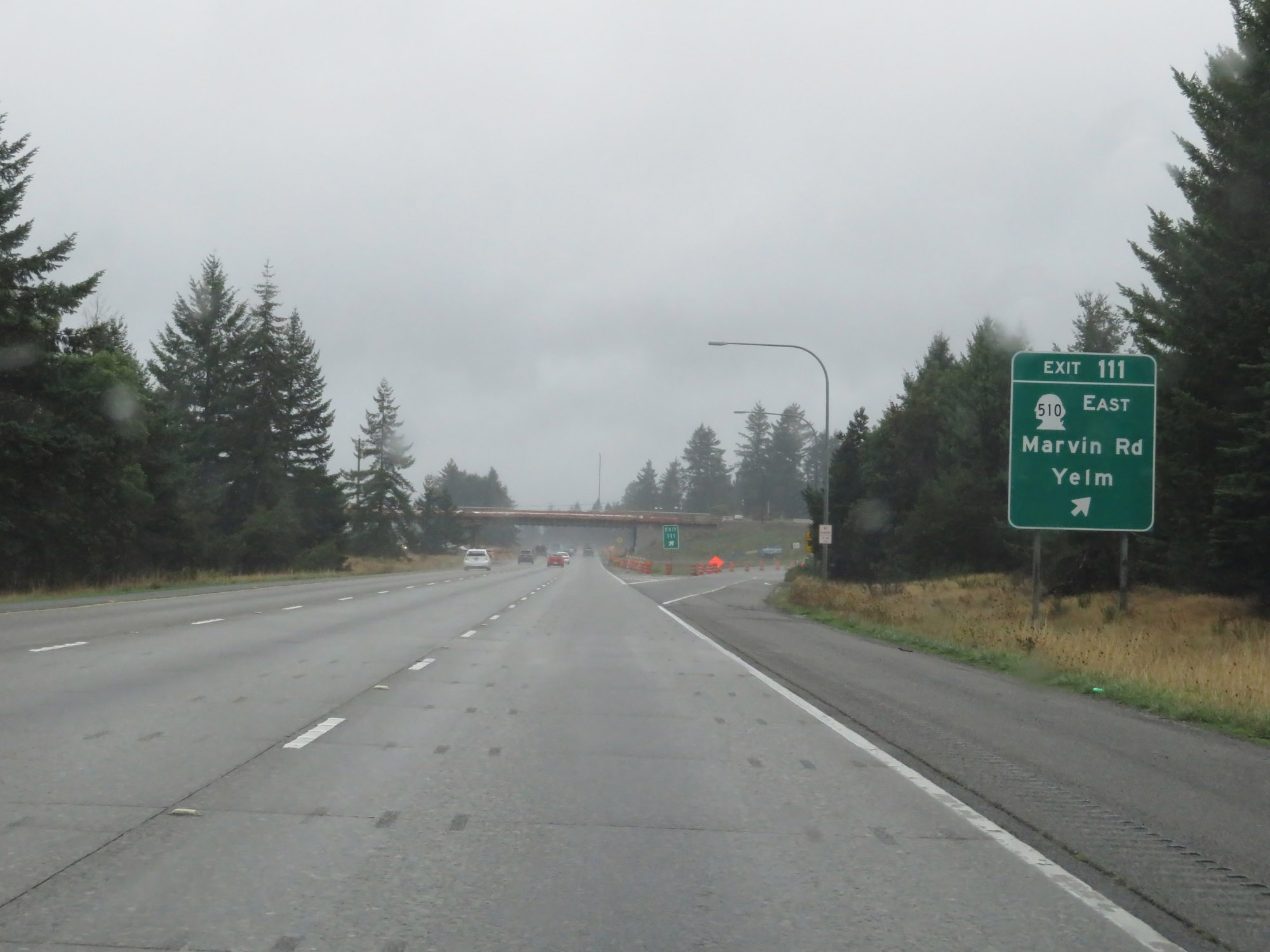 |  | Interstate 5 South at Exit 111: WA 510 East - Marvin Rd / Yelm (Photo taken 9/22/19). |