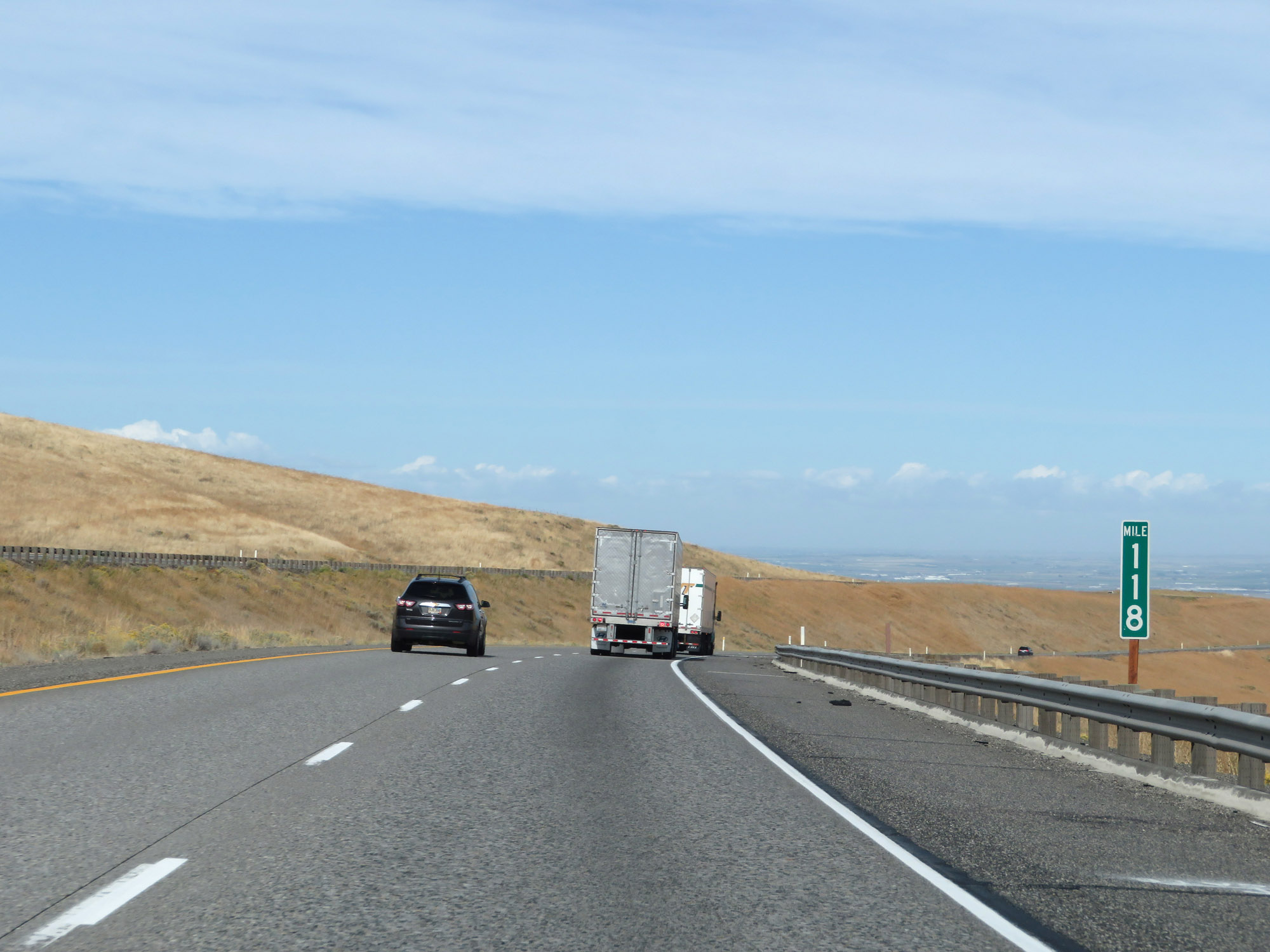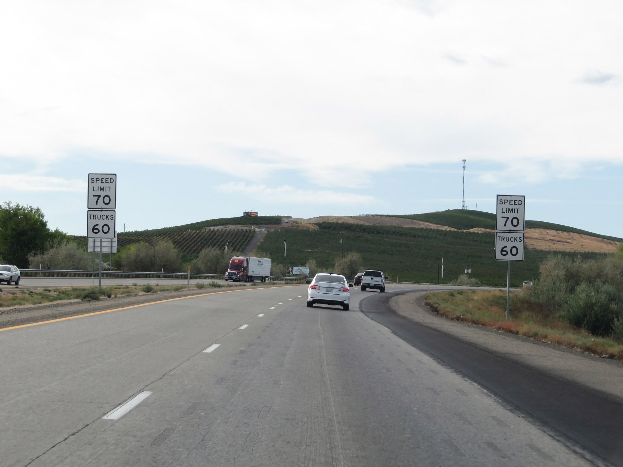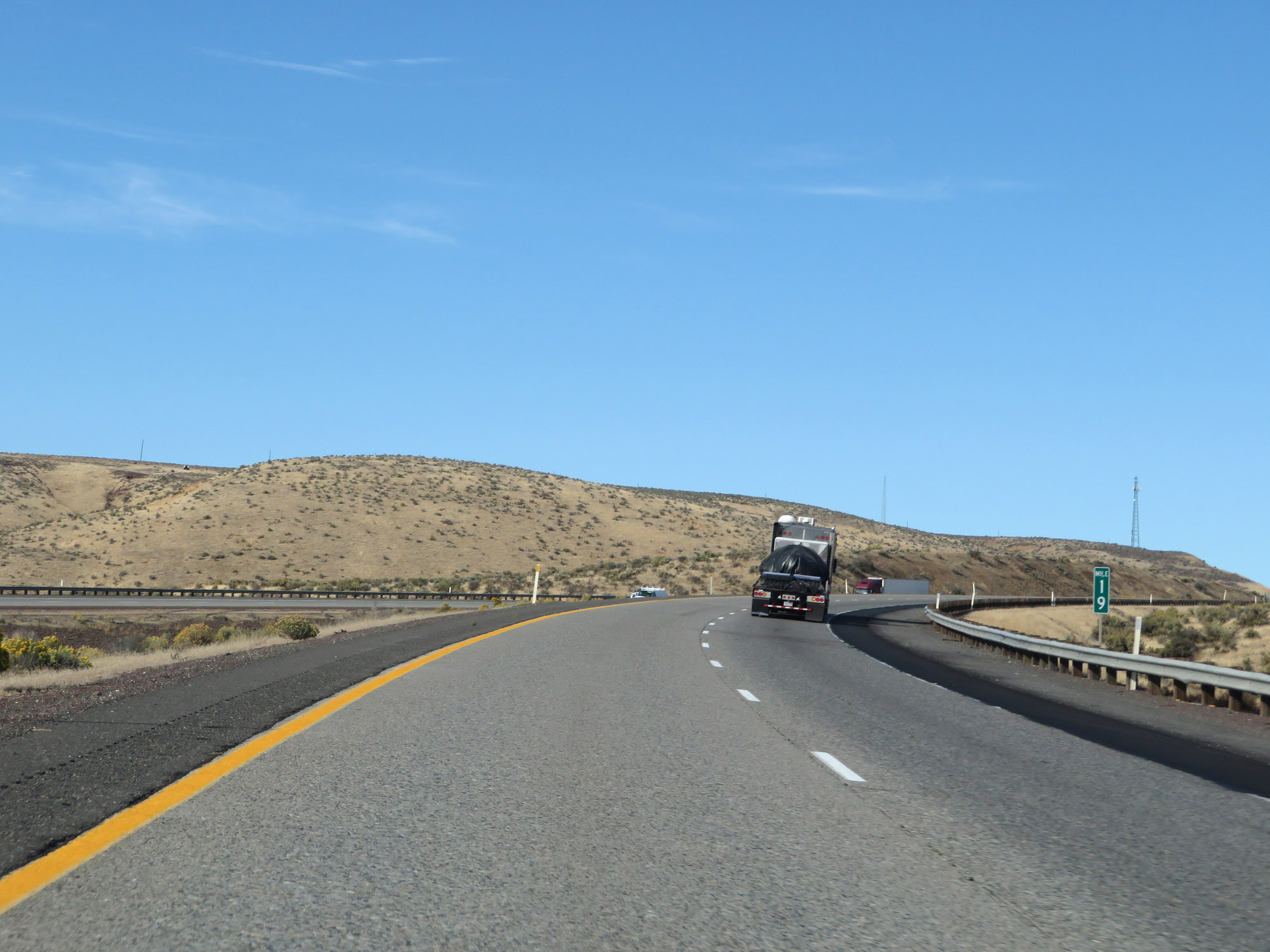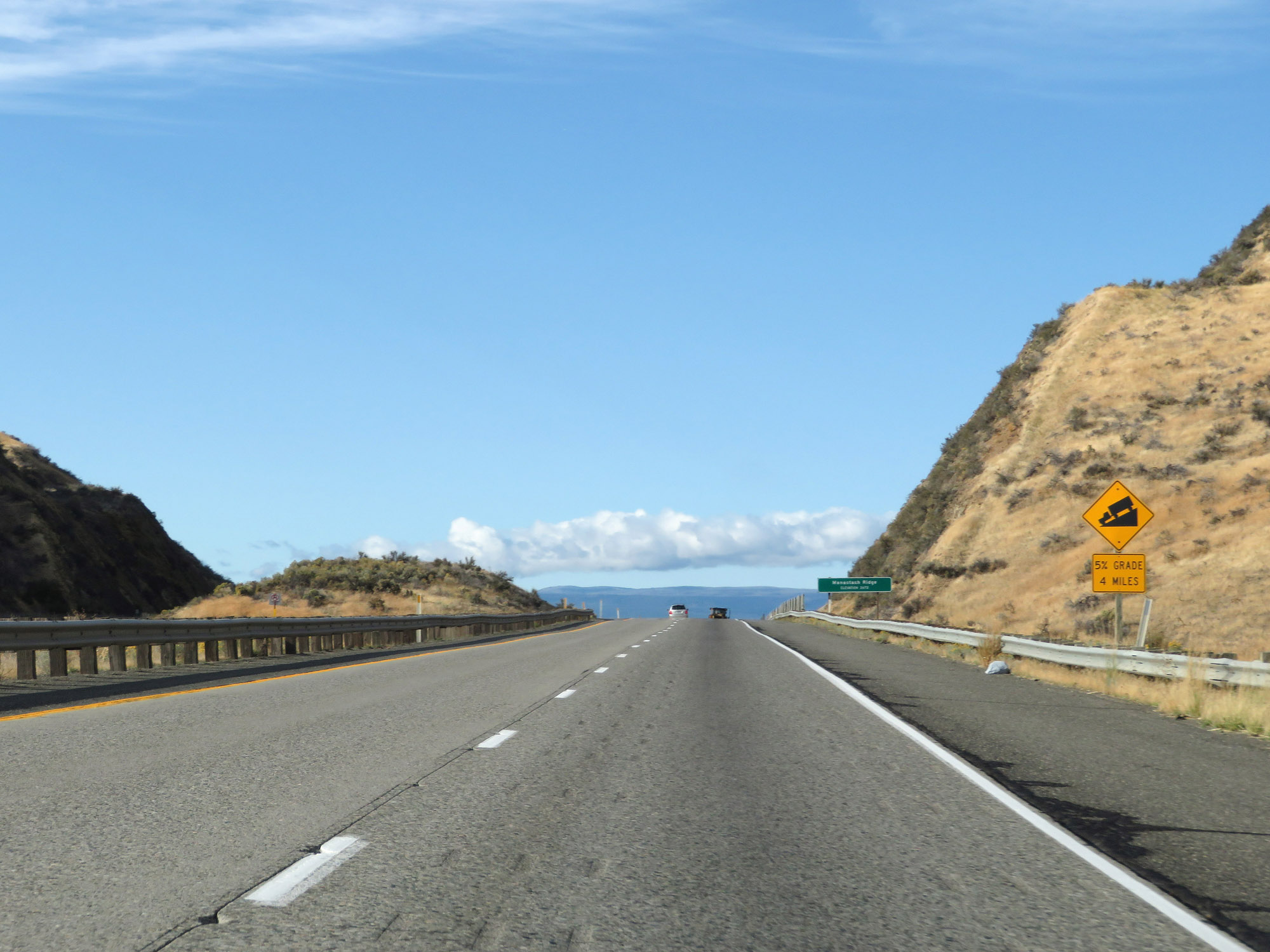 View on Interstate 82 West as it continues down the 5% grade. (Photo taken 9/26/19). |