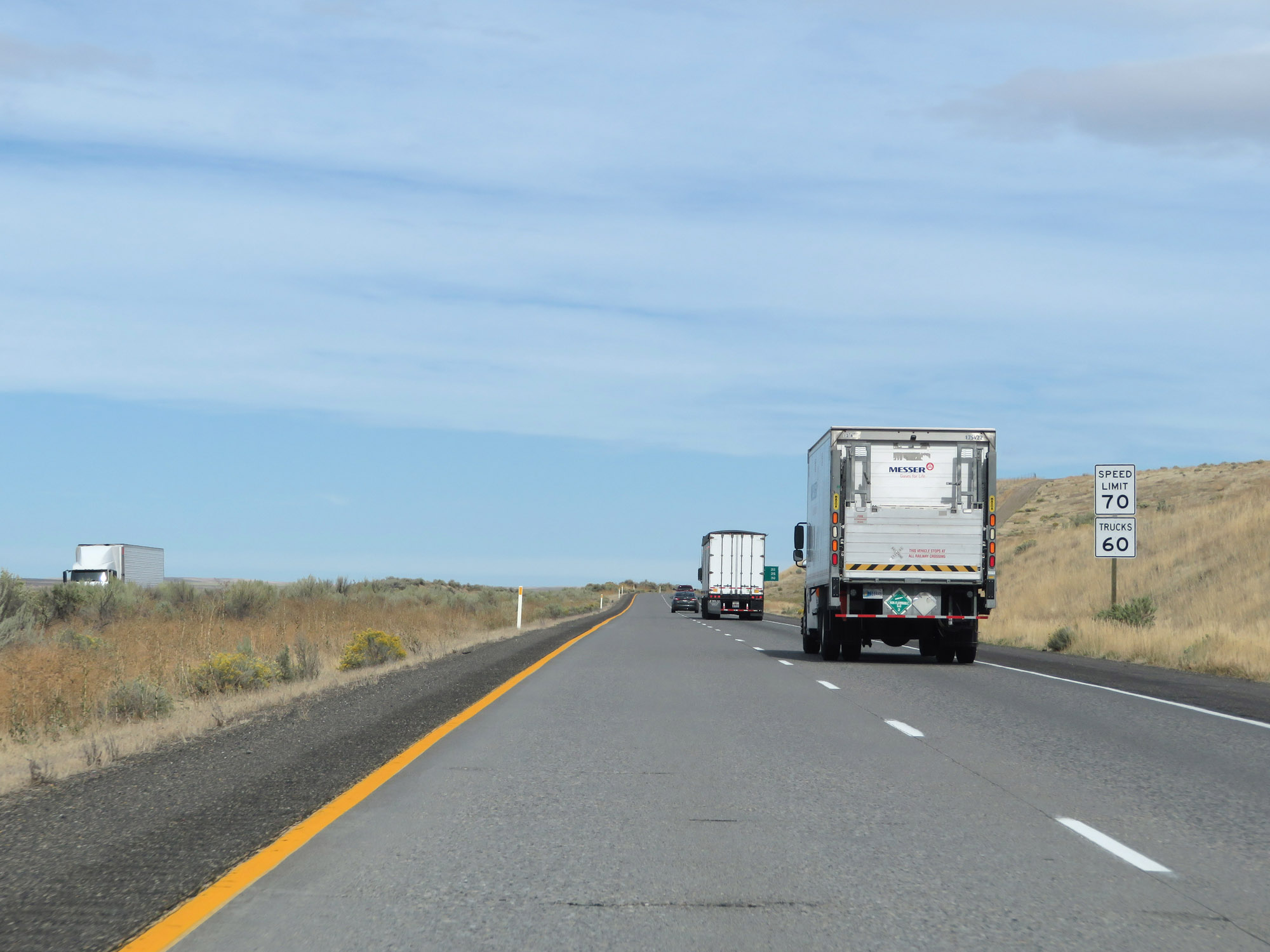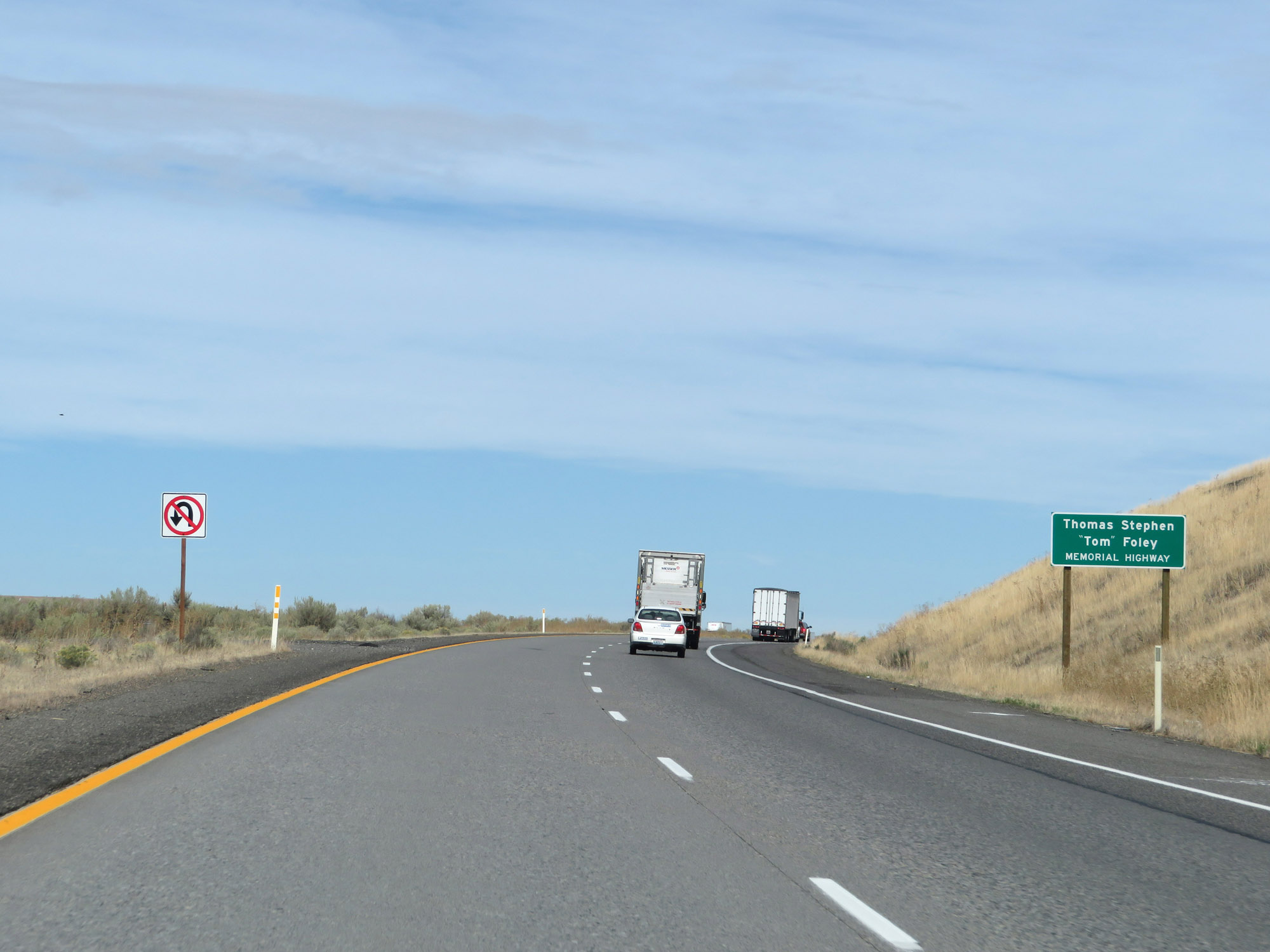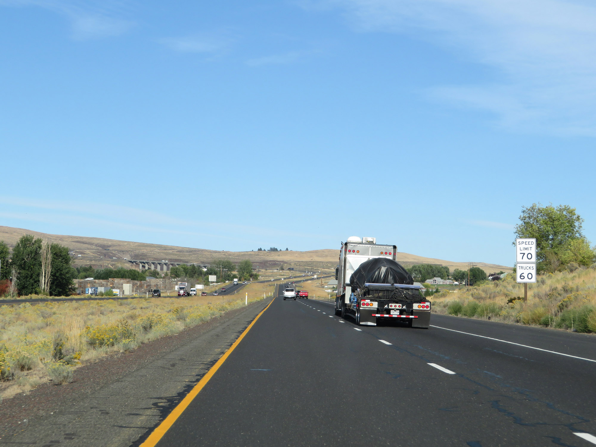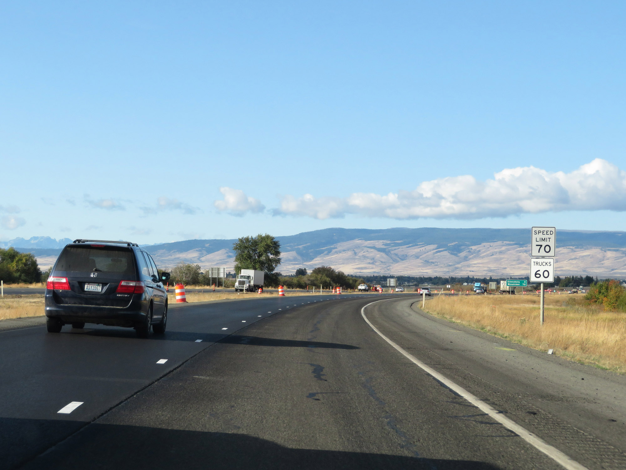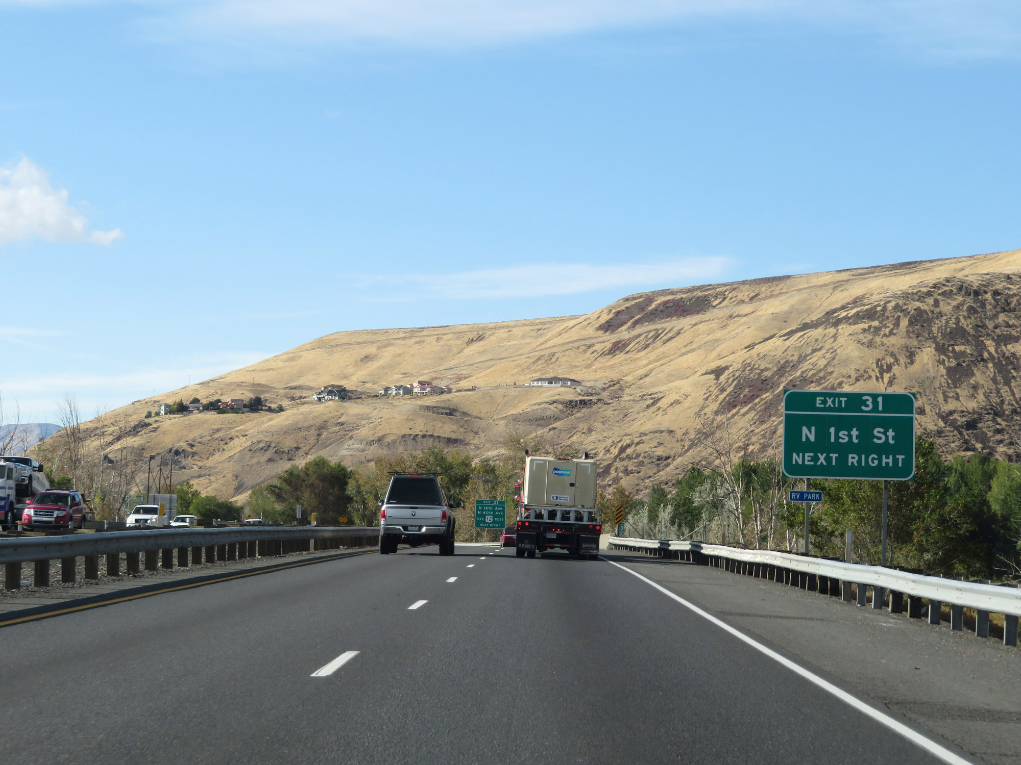 View on Interstate 82 West as it continues down the 5% grade. (Photo taken 9/26/19). |