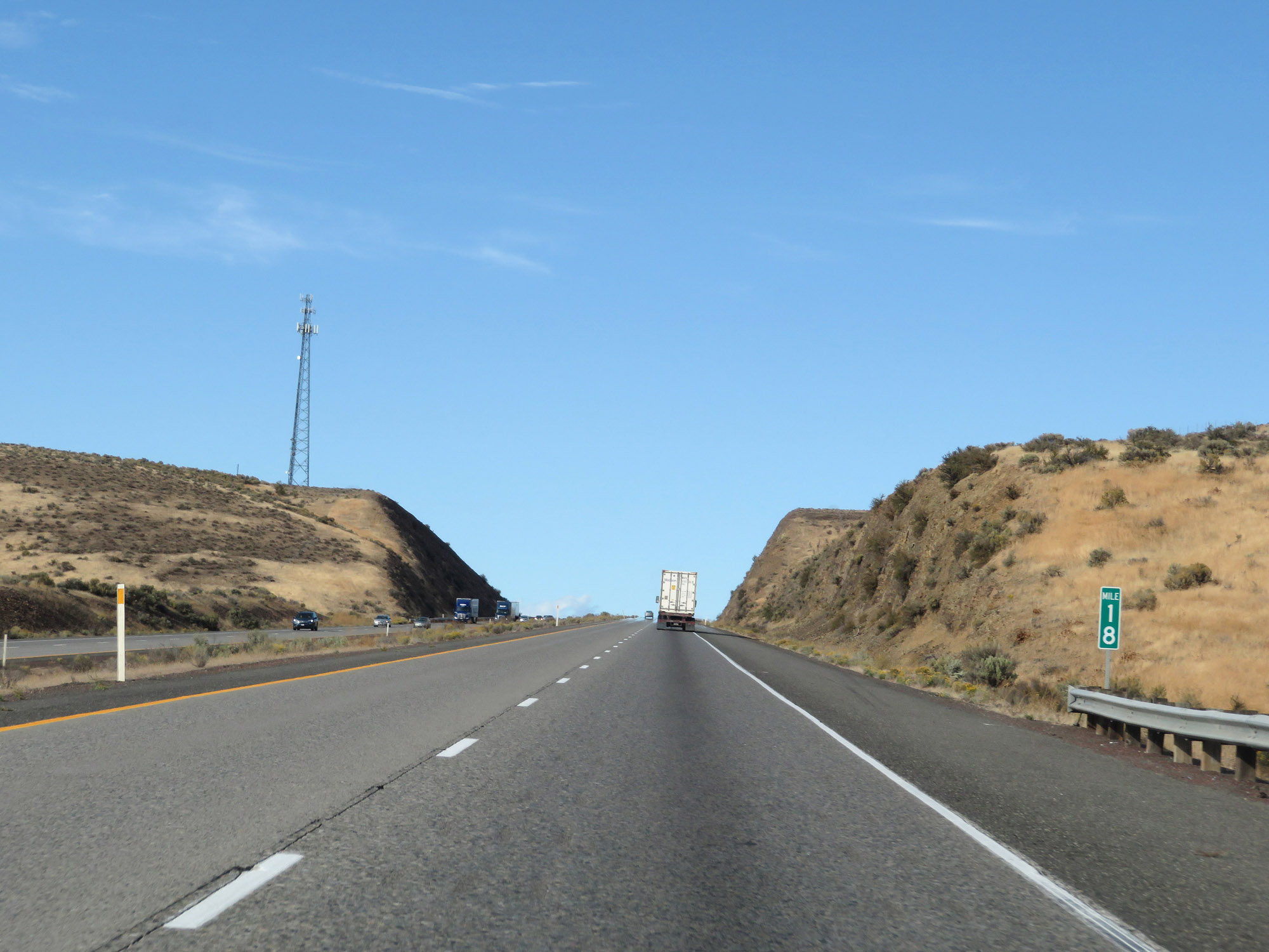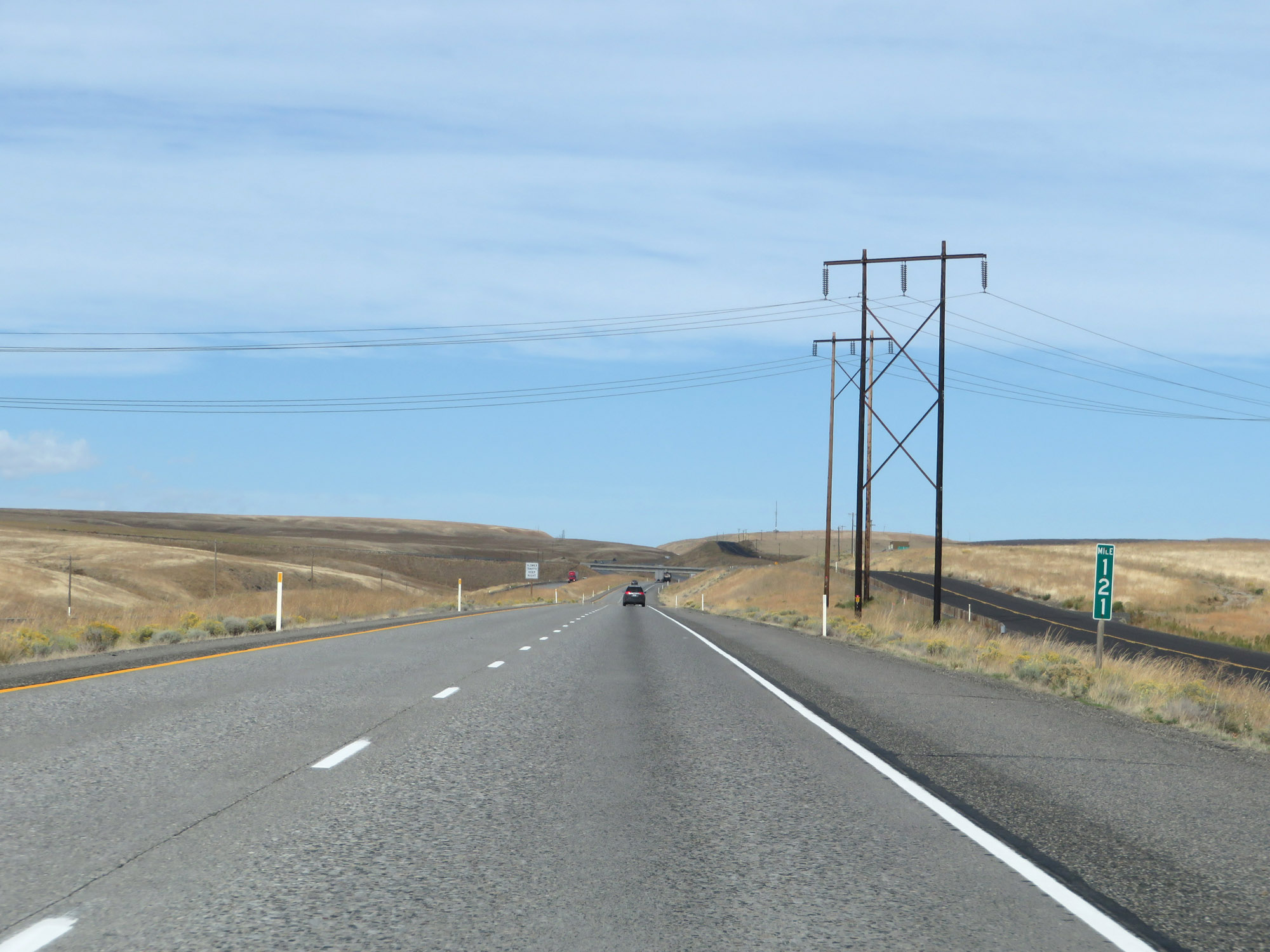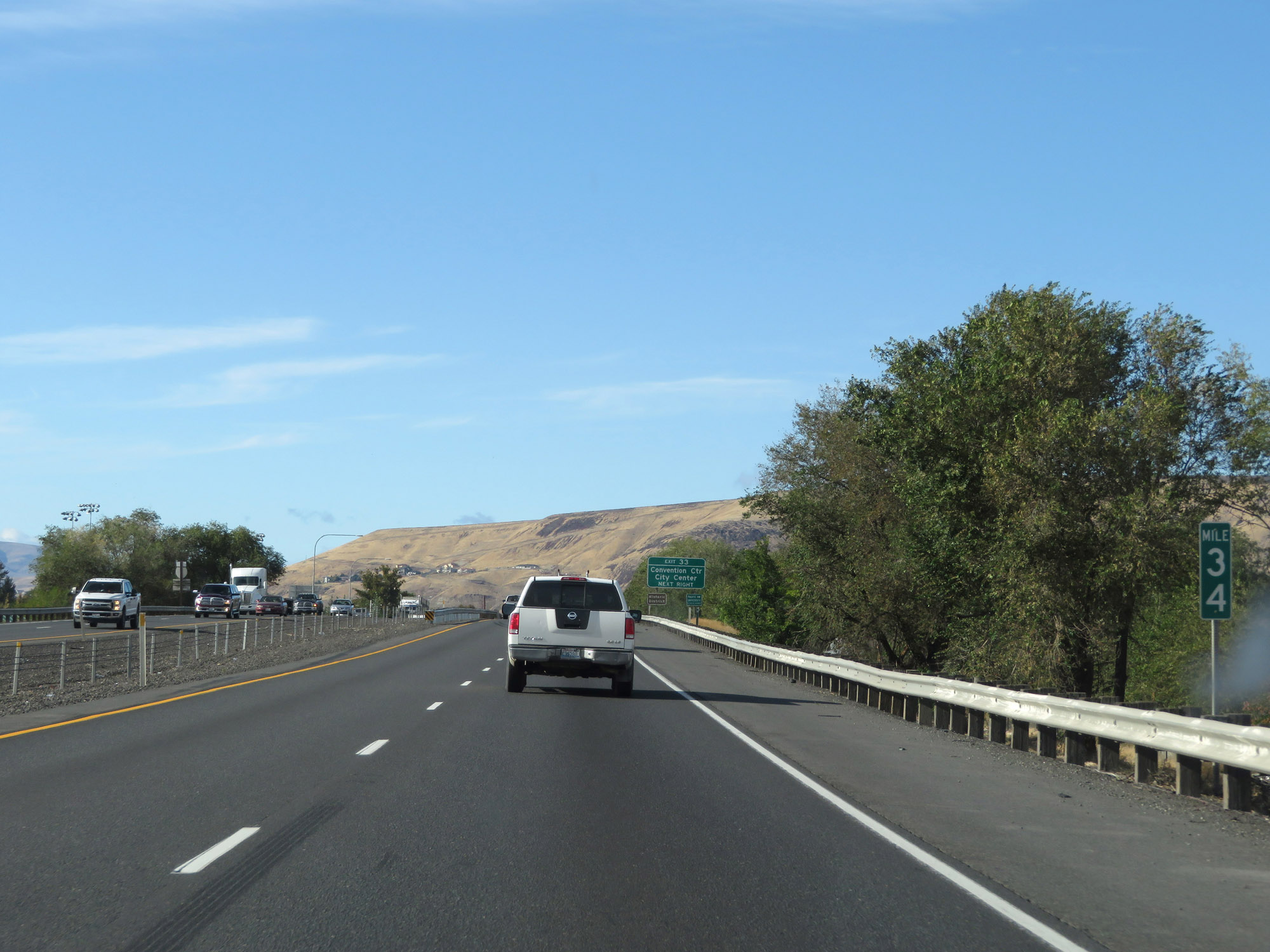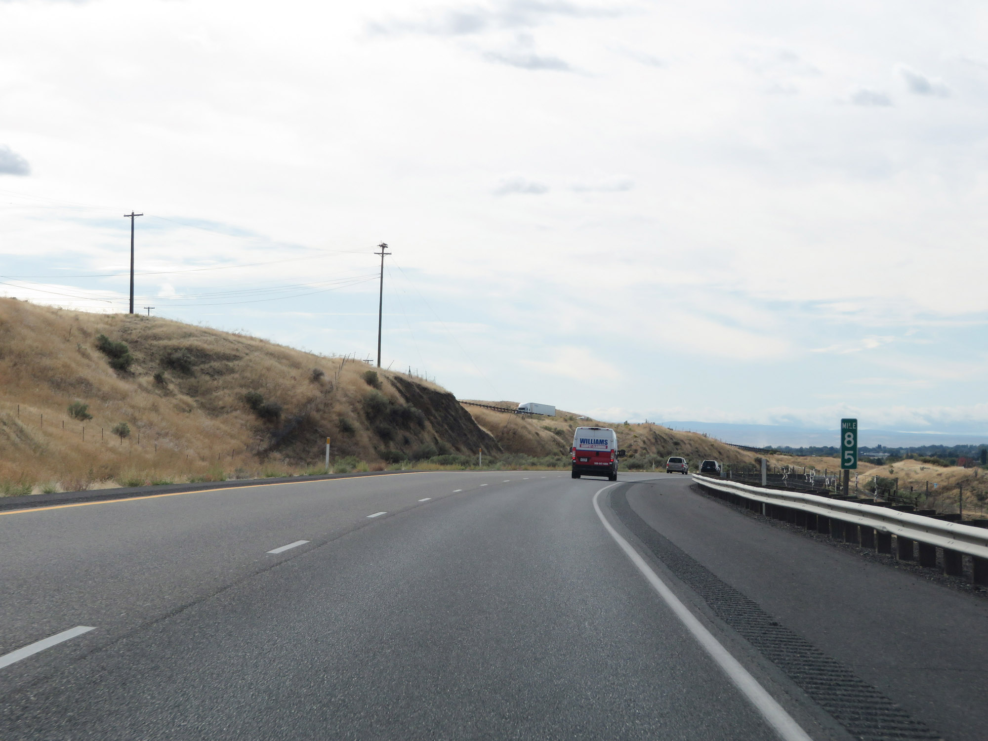Interstate 82 West at mile marker 4, still traversing the downgrade. (Photo taken 9/26/19). |