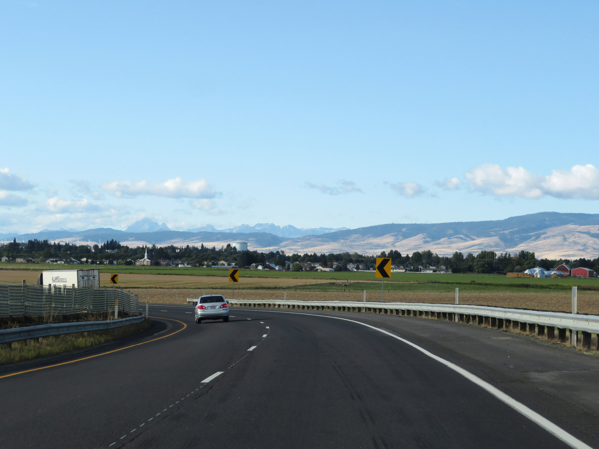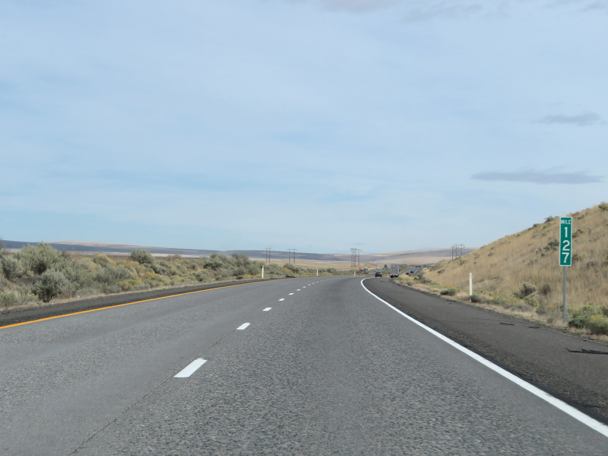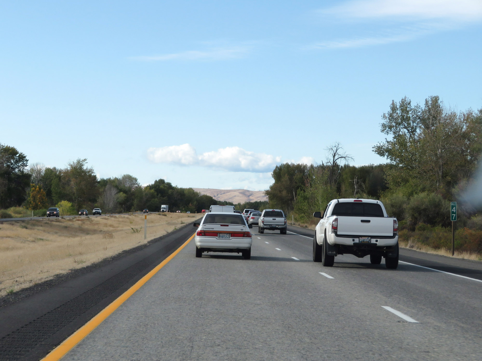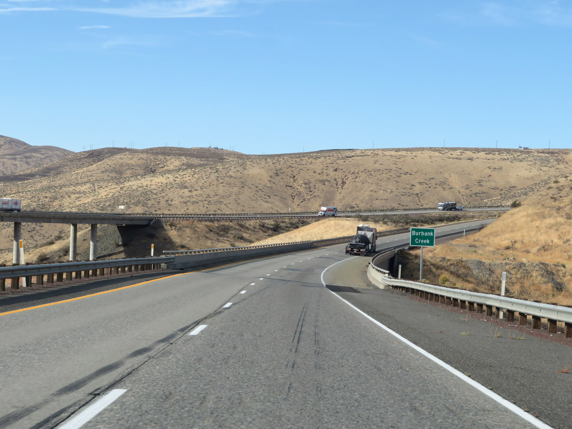 Interstate 82 West at mile marker 4, still traversing the downgrade. (Photo taken 9/26/19). |