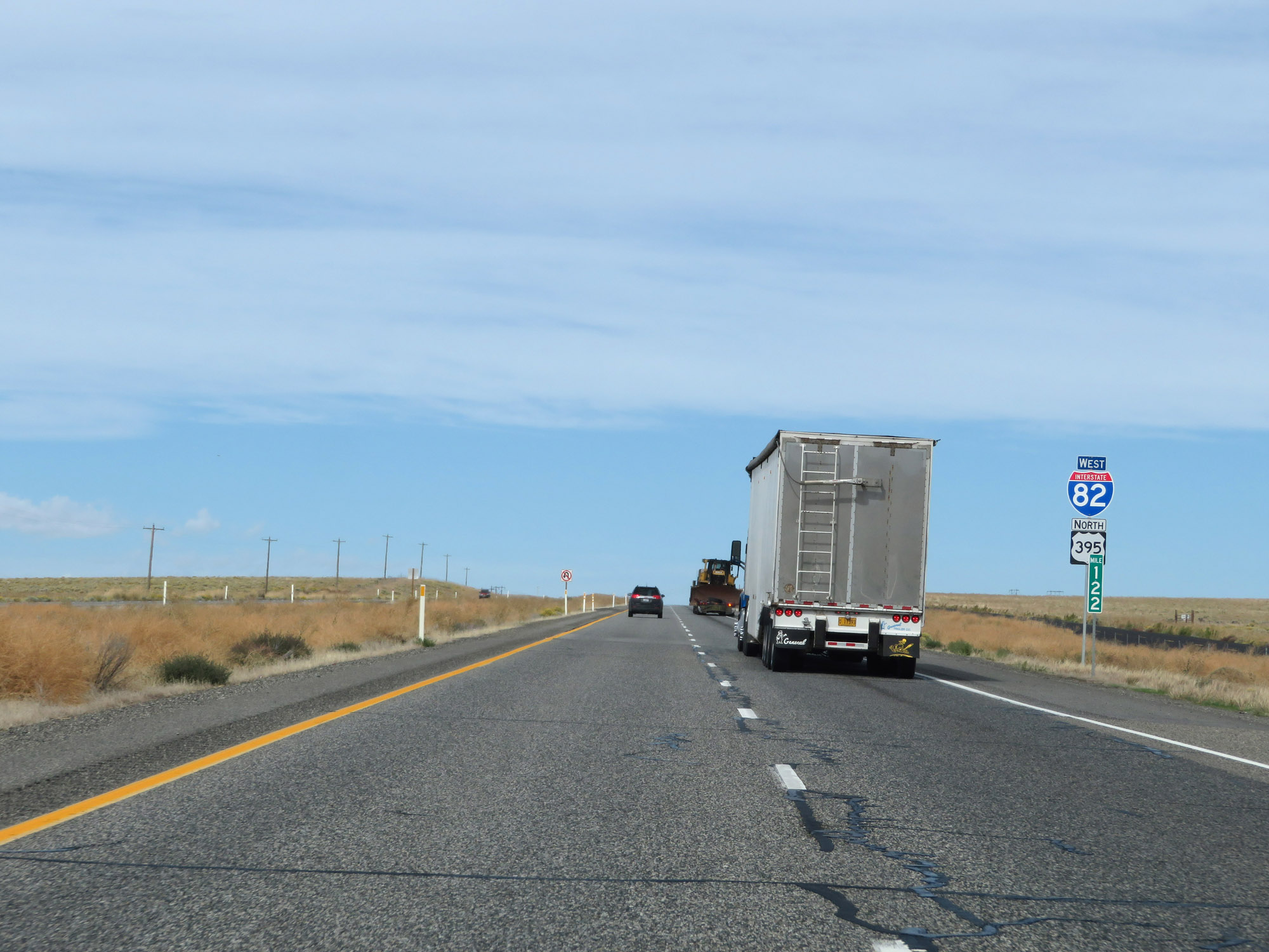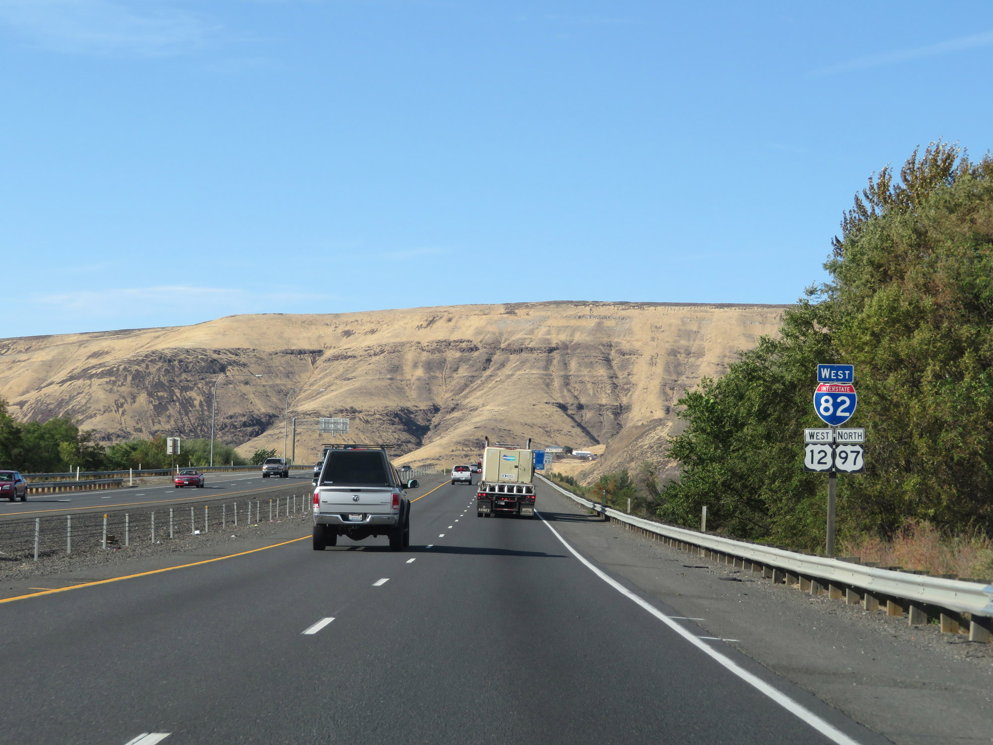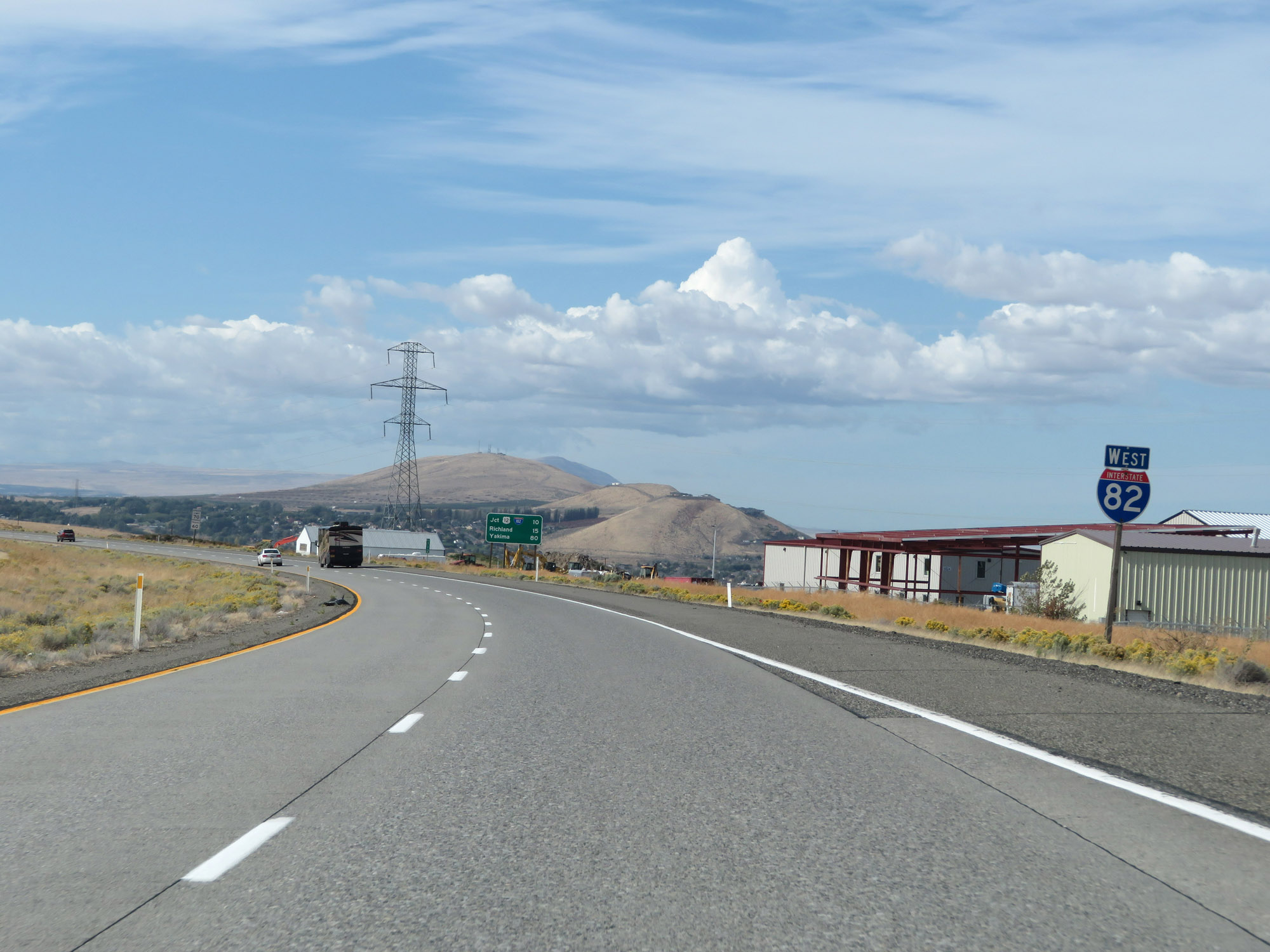 View on Interstate 82 West as it approaches its western terminus at the junction of Interstate 90. (Photo taken 9/26/19). |