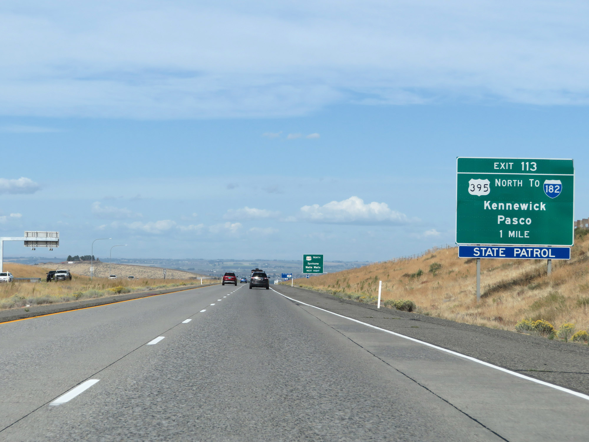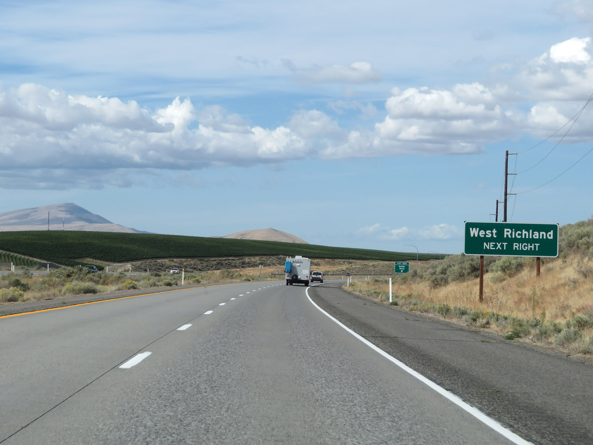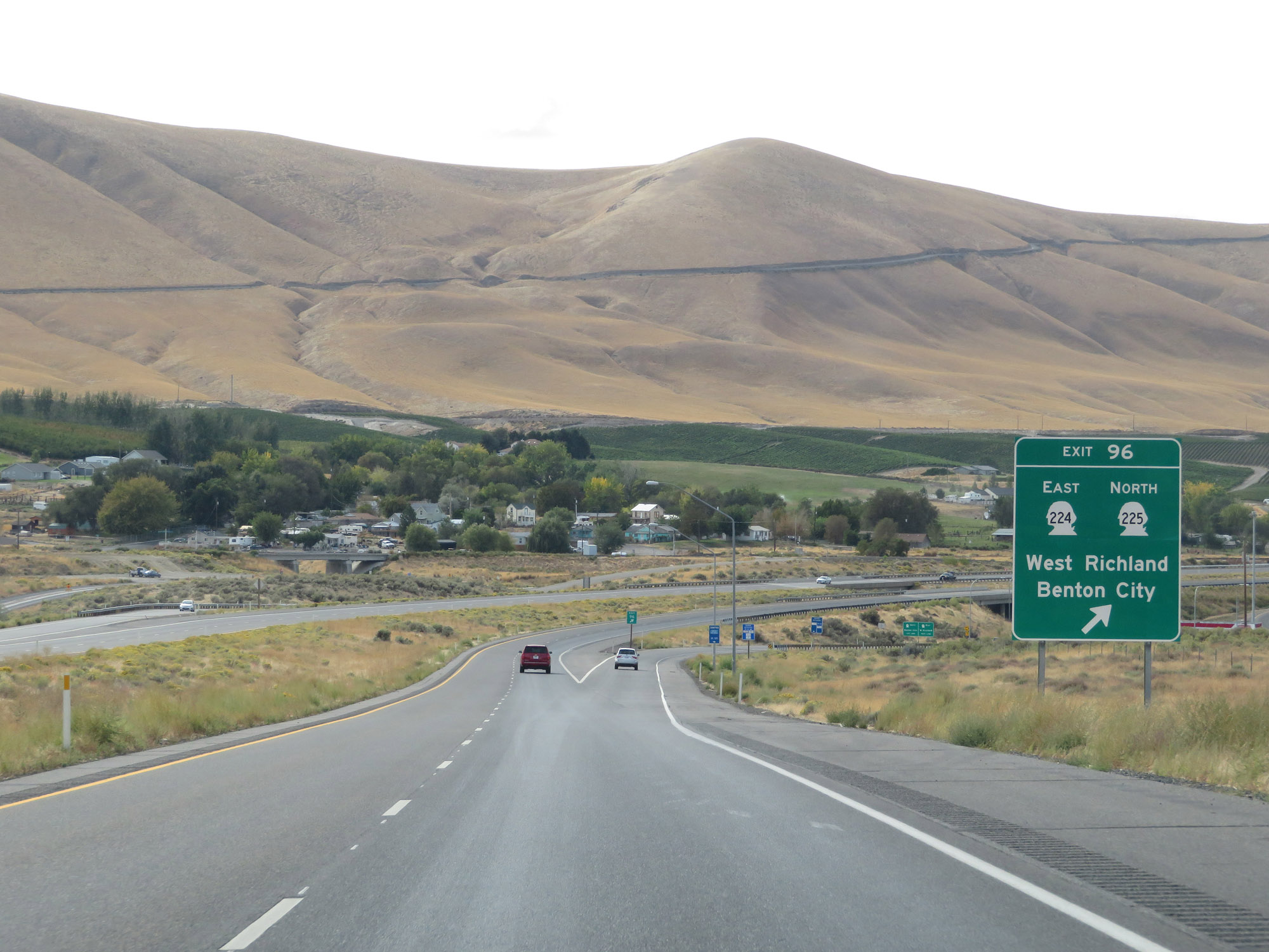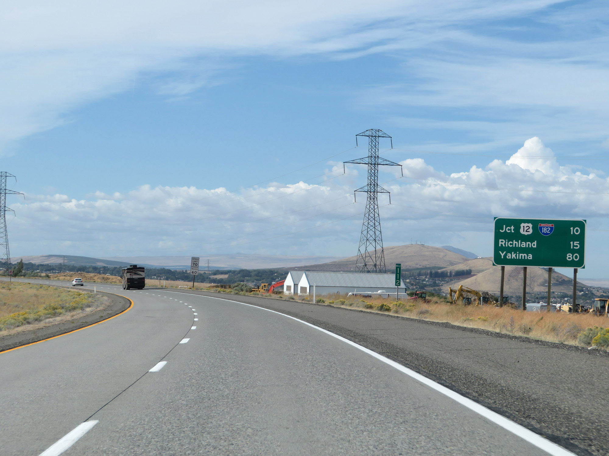 View on Interstate 82 West as it approaches its western terminus at the junction of Interstate 90. (Photo taken 9/26/19). |