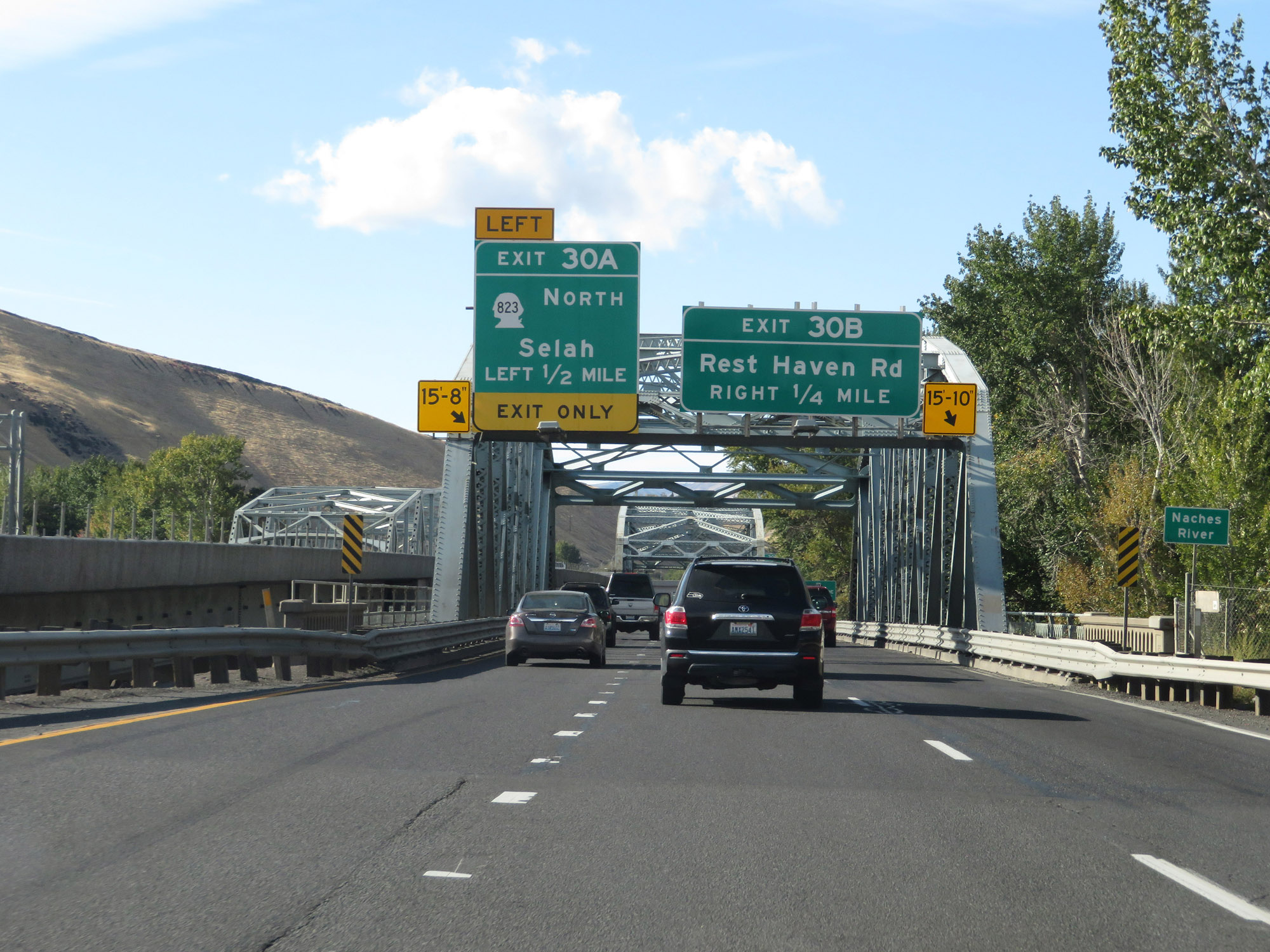 Interstate 82 West as it crosses the Naches River, approaching Exit 30B. (Photo taken 9/26/19). |