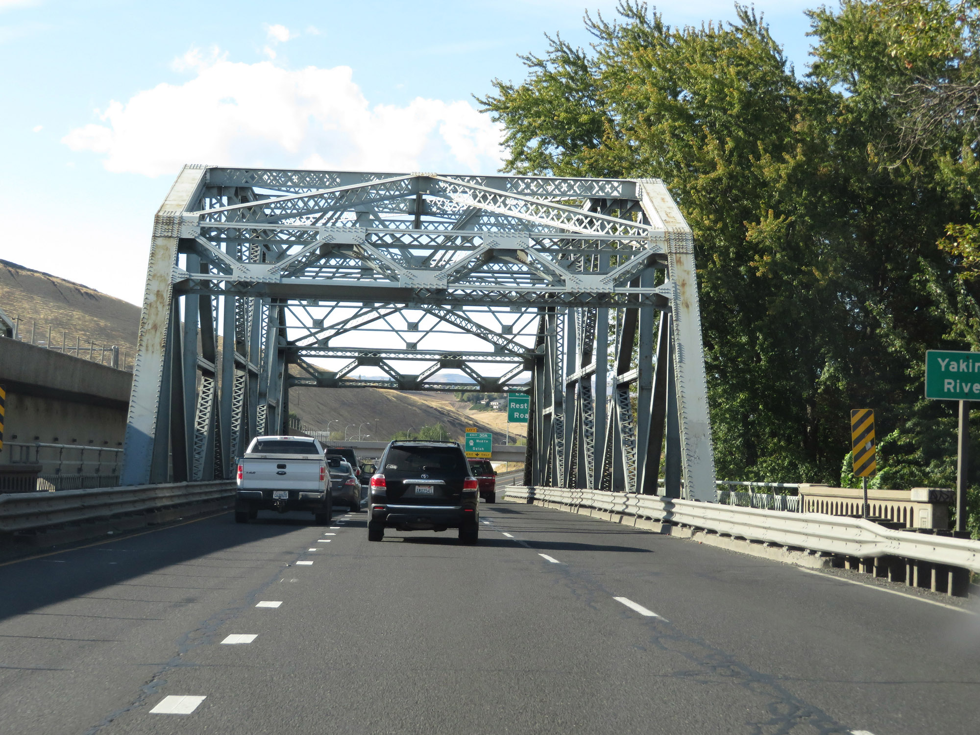 Immediately after crossing the Naches River, Interstate 82 West crosses the Yakima River just before Exit 30B. (Photo taken 9/26/19). |