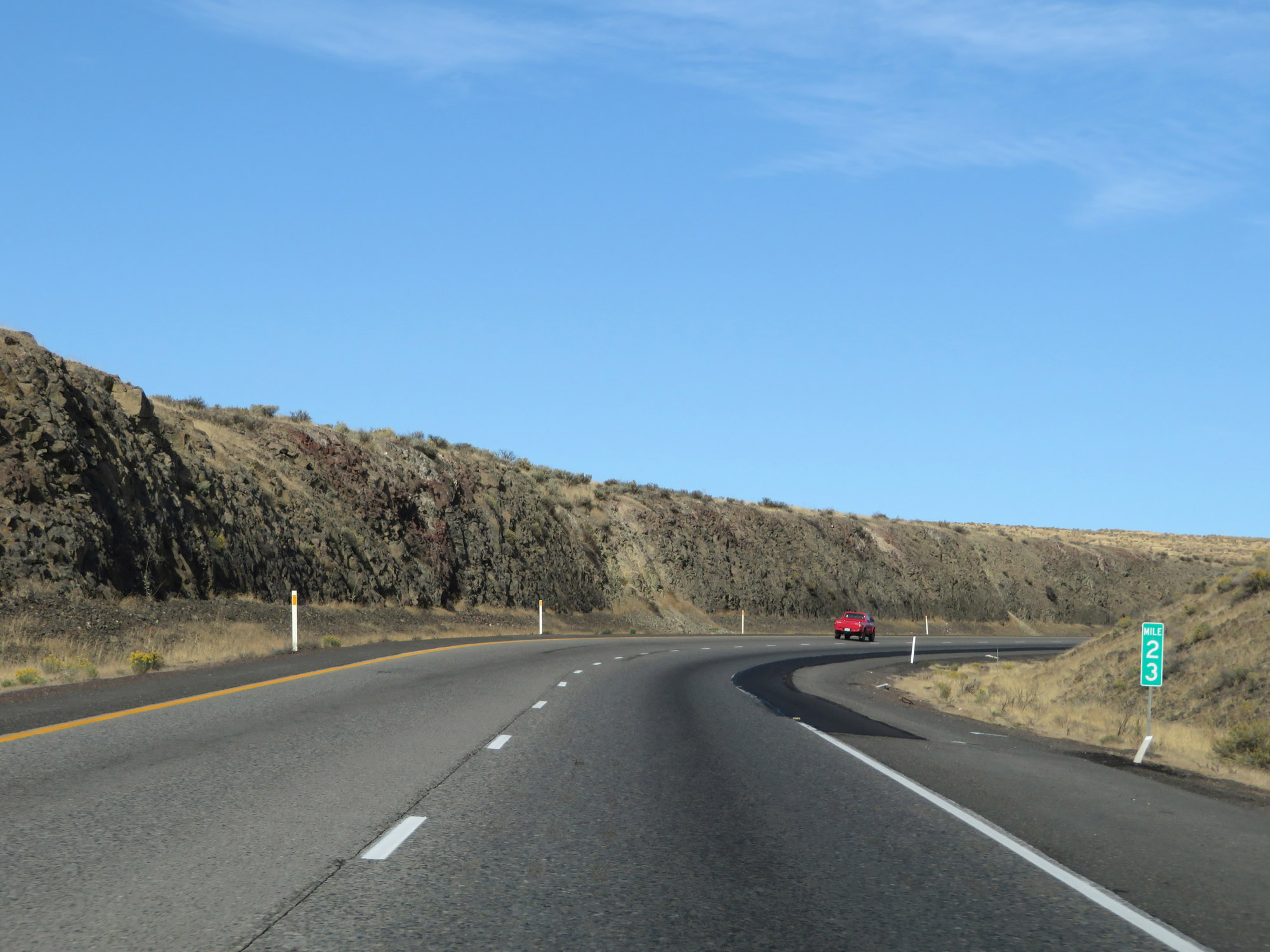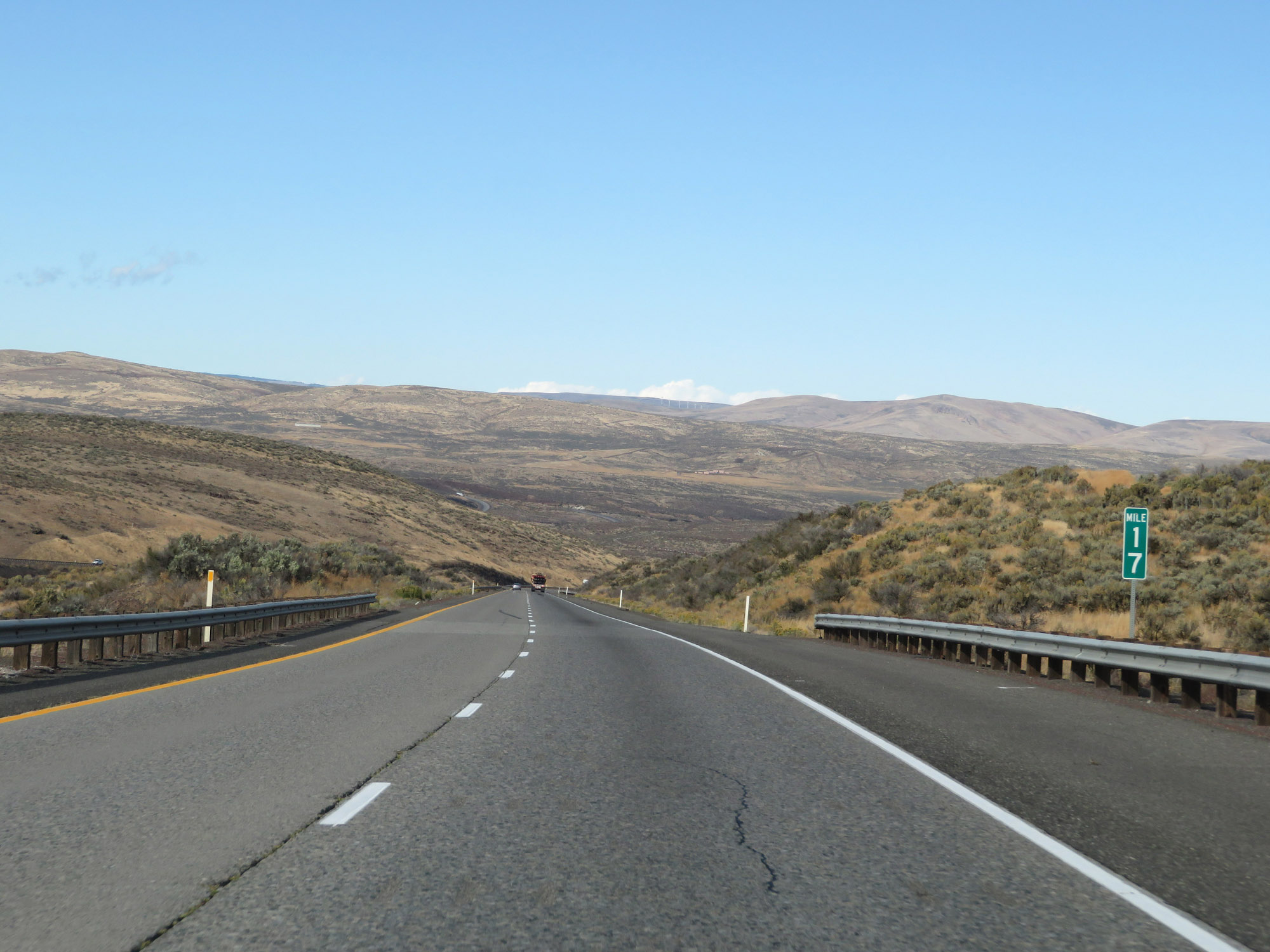 Interstate 82 West at mile marker 16, as it continues its descent. (Photo taken 9/26/19). |
