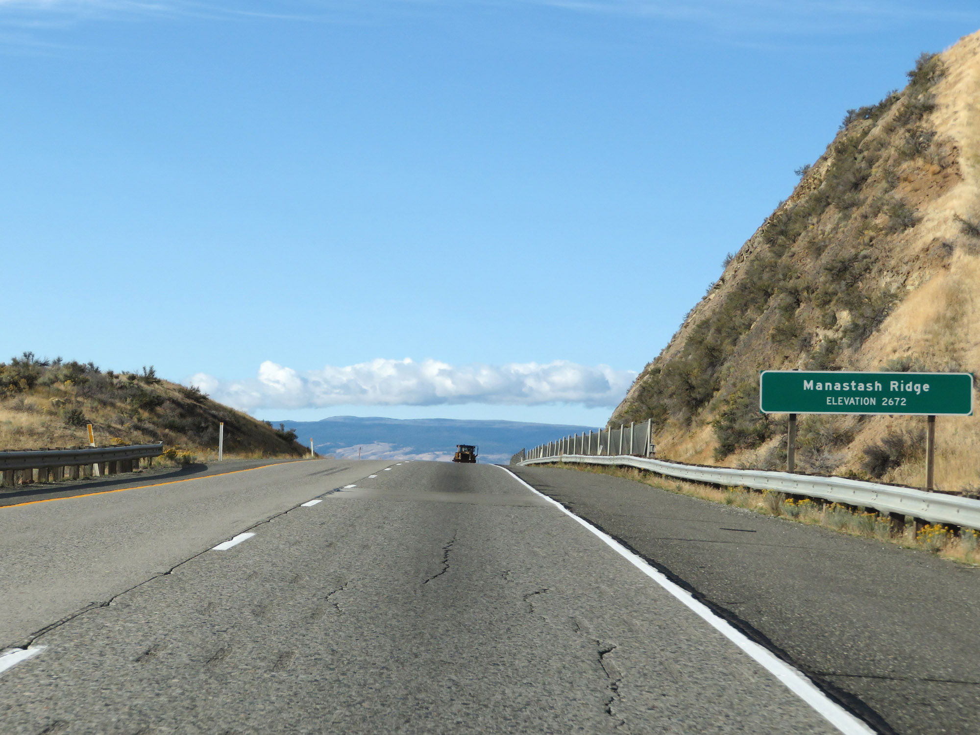 Interstate 82 West as it reaches the summit of North Umtanum Ridge at an elevation of 2,315 feet. (Photo taken 9/26/19). |