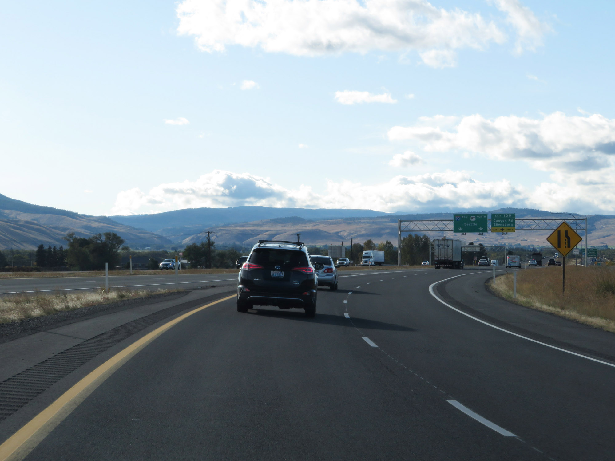 View on the ramp to Interstate 90 West from Interstate 82 West as it begins to curve to the west. (Photo taken 9/26/19). |