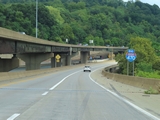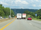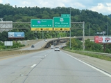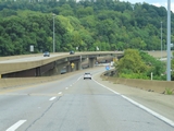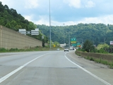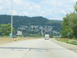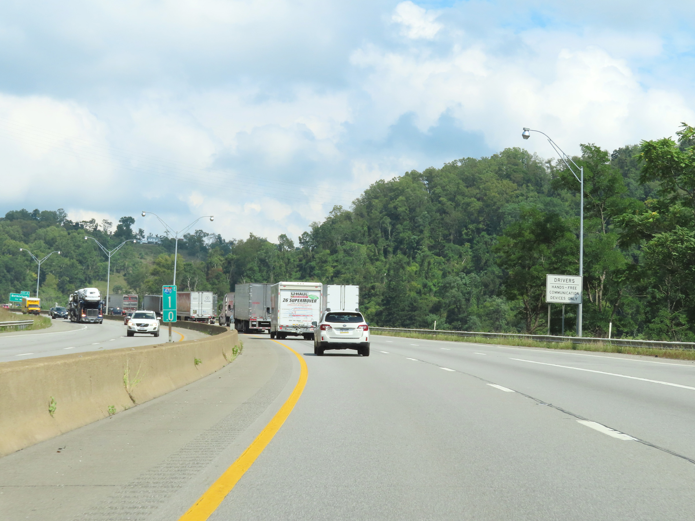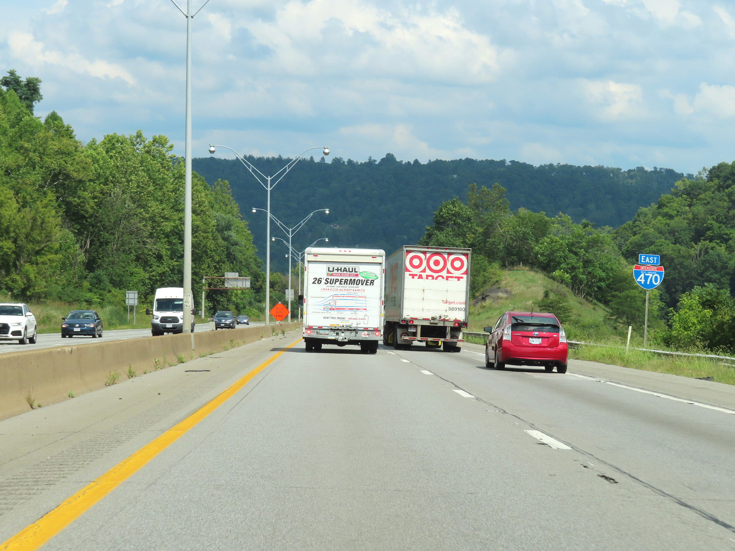 At mile marker 1, Interstate 470 East begins to climb up out of the Ohio River valley. The on ramp from Exit 1 continues to become a truck climbing lane. (Photo taken 8/21/22). |