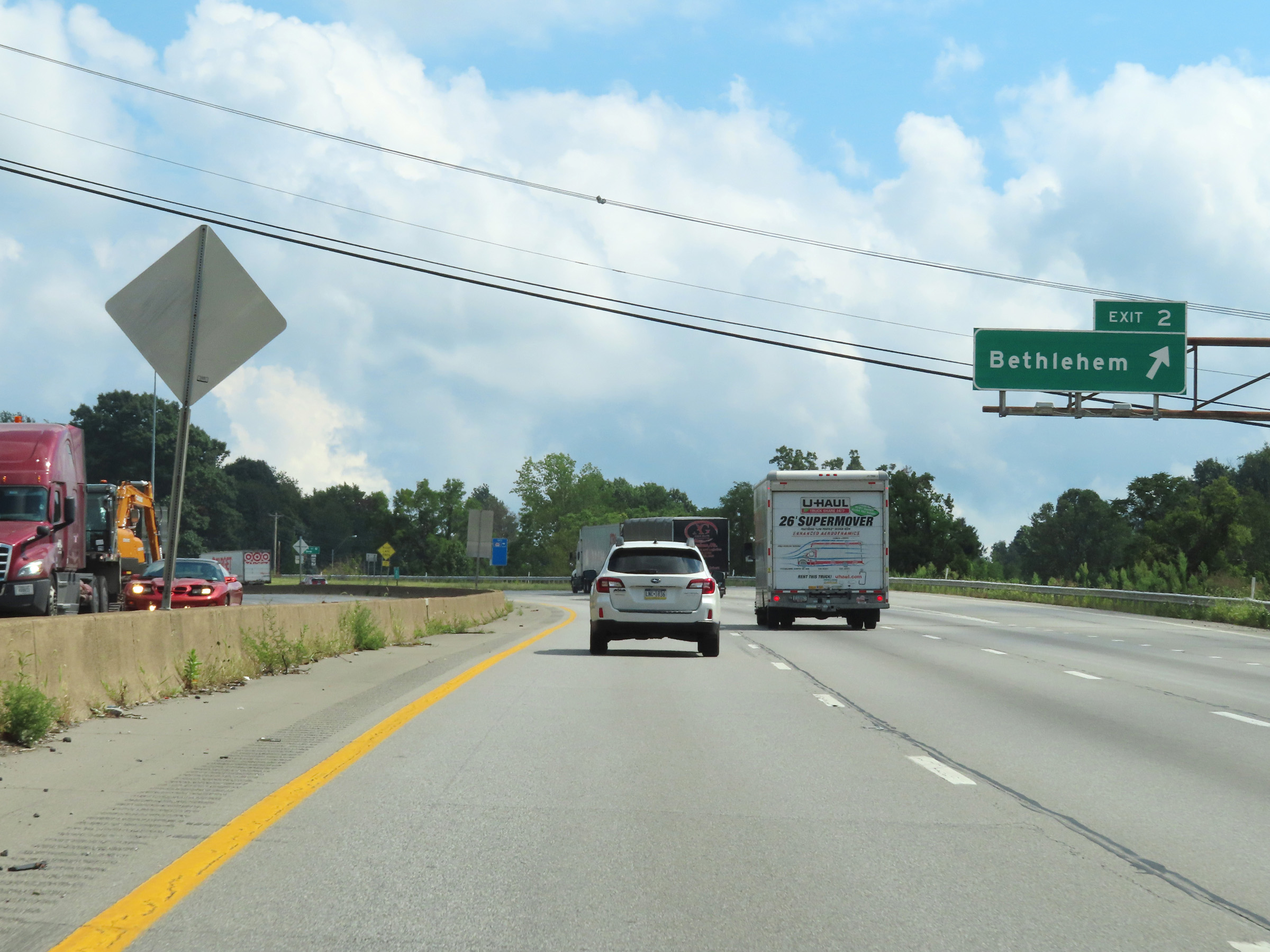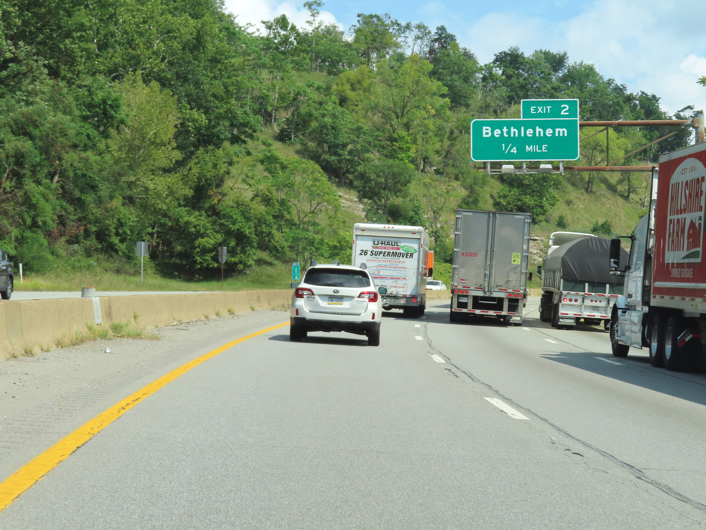 Interstate 470 East at Exit 2: Bethlehem (Photo taken 8/21/22). |