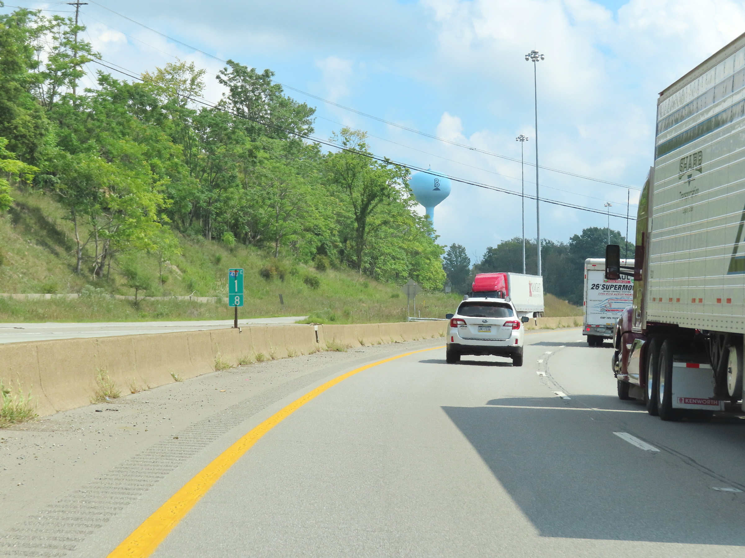 Mile marker 1.8 on Interstate 470 East in Ohio County, as it nears the top of the grade. (Photo taken 8/21/22). |