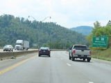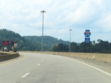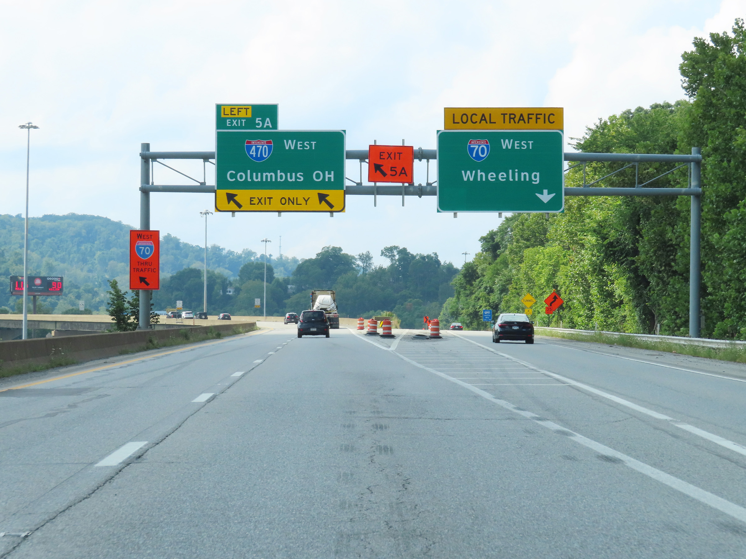 Interstate 470 West begins at left Exit 5A on Interstate 70 East in West Virginia. I-470 serves as a bypass of downtown Wheeling and the Wheeling Tunnel. (Photo taken 8/21/22). |