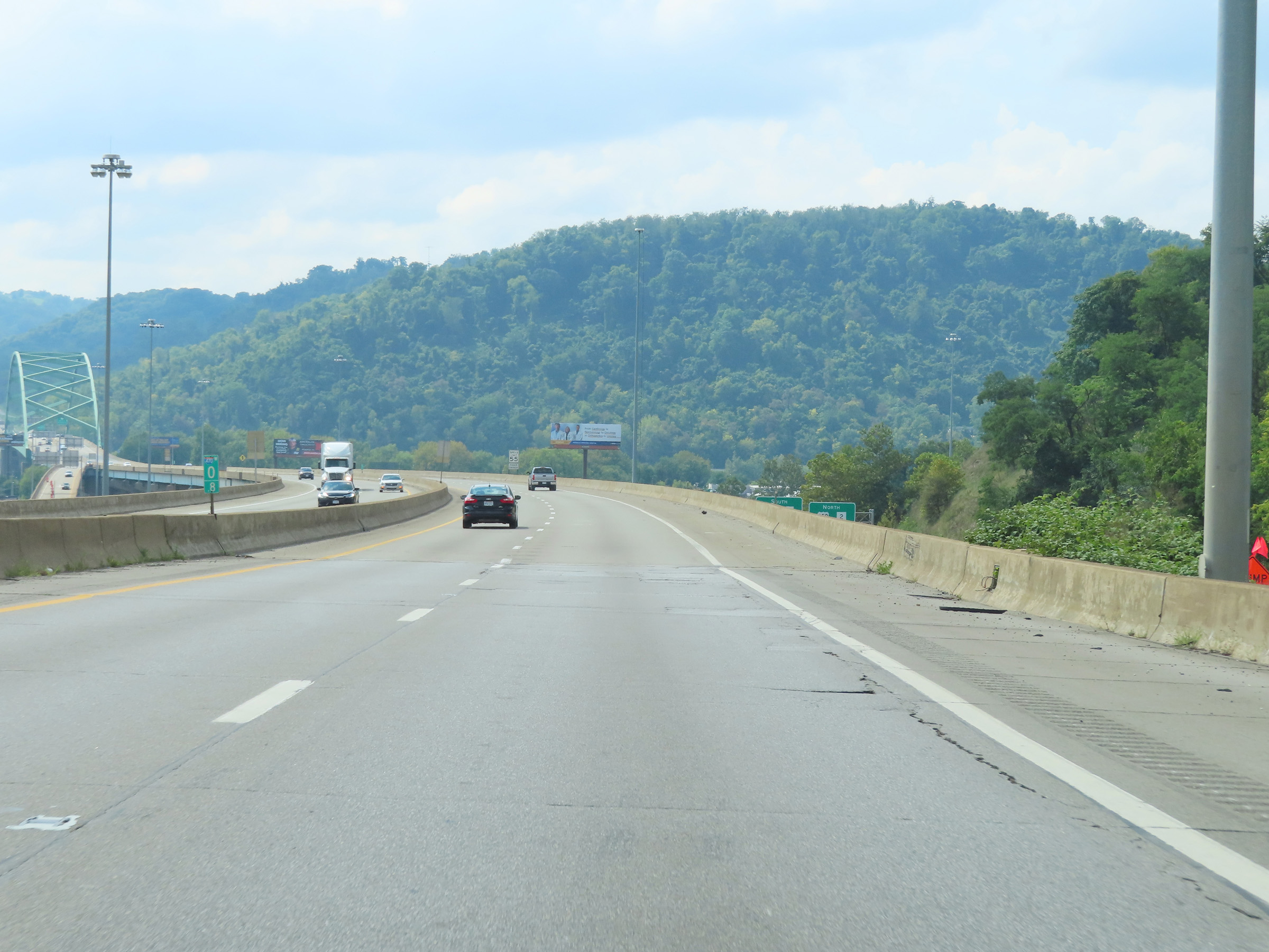 At mile marker 0.8, Interstate 470 West starts across the Vietnam Veterans Memorial Bridge which will carry Interstate 470 West traffic over the Ohio River and into Ohio. (Photo taken 8/21/22). |