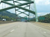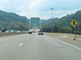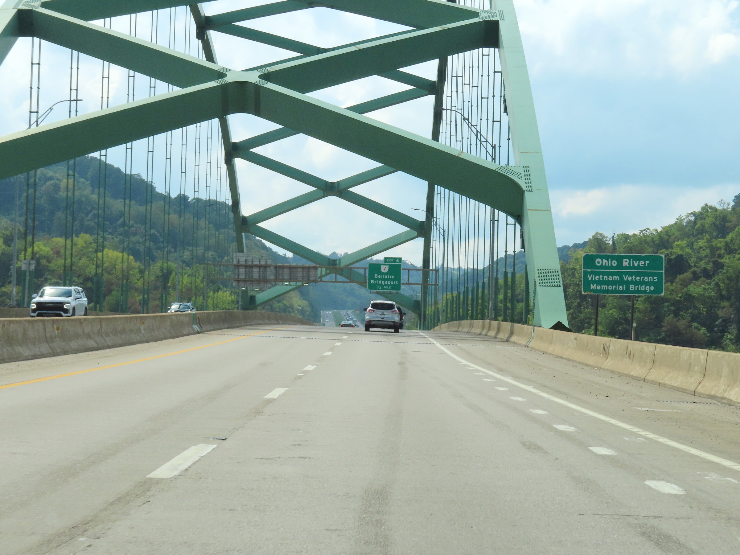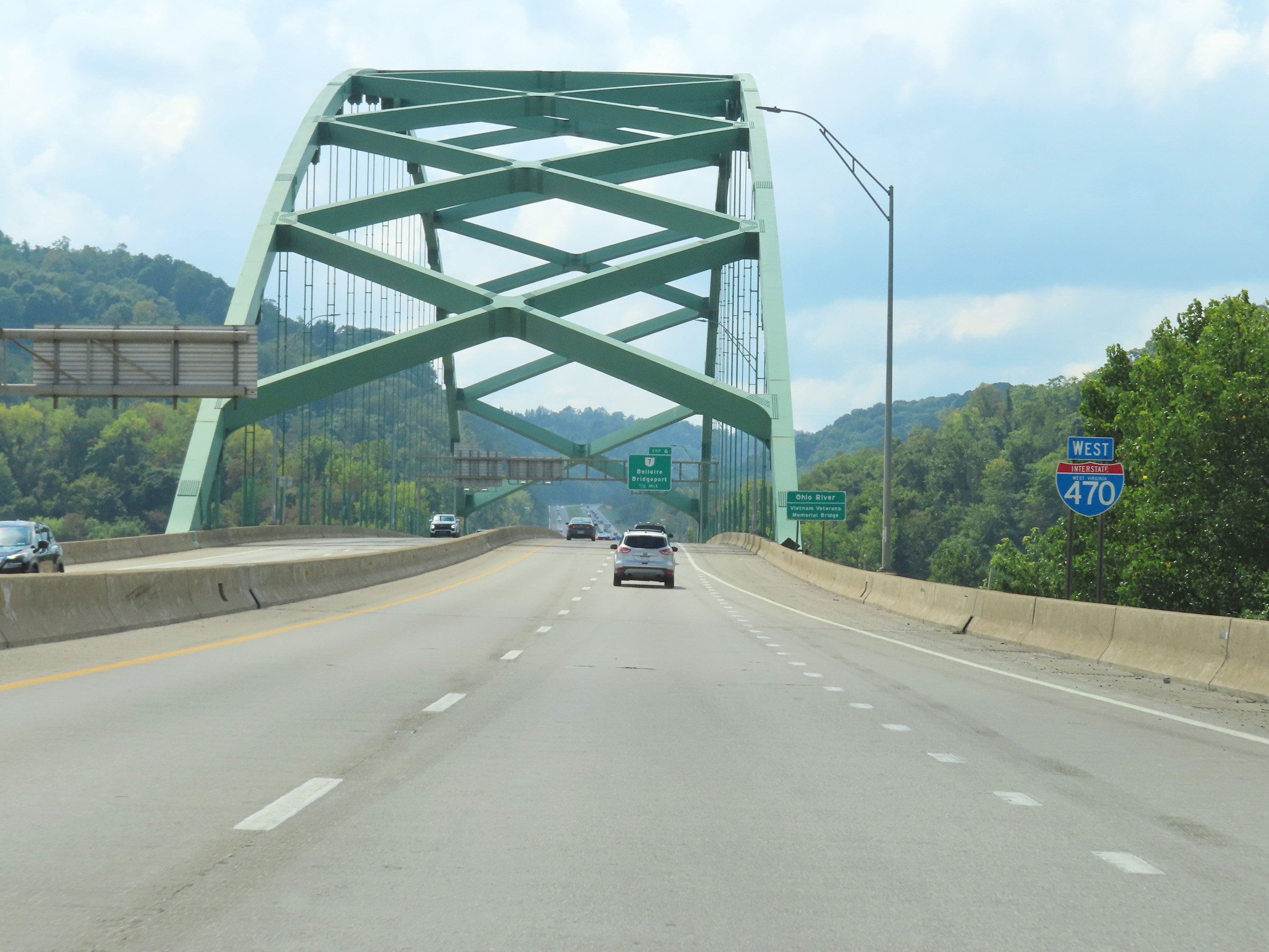 Interstate 470 West as it crosses the Vietnam Veterans Memorial Bridge over the Ohio River, which marks the state line between West Virginia and Ohio. (Photo taken 8/21/22). |