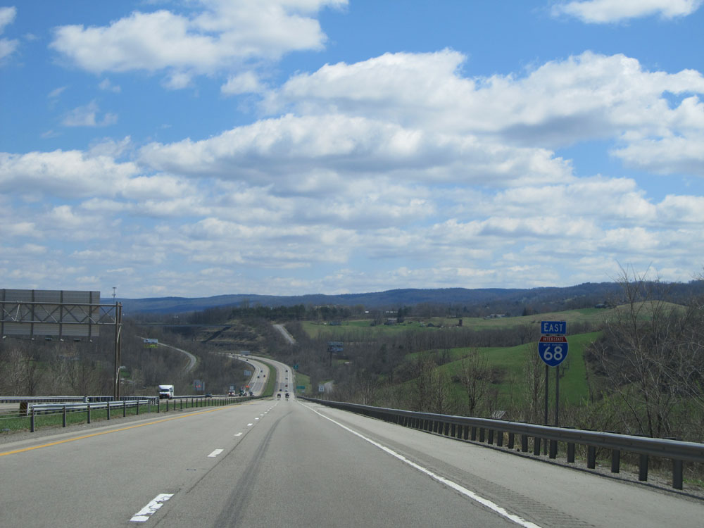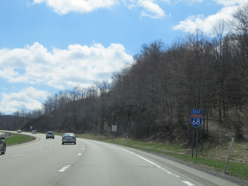 Interstate 68 East shield located near mile marker 11.5. (Photo taken 4/11/15).