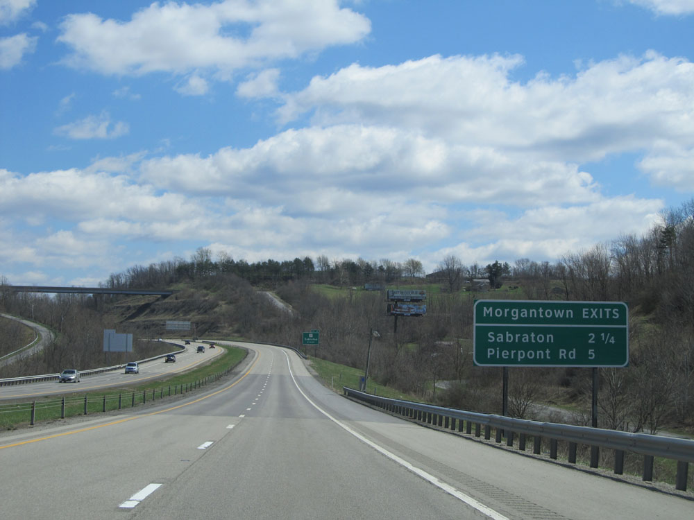 Interstate 68 East at Exit 1: US 119 - University Ave / Downtown (Photo taken 4/11/15).