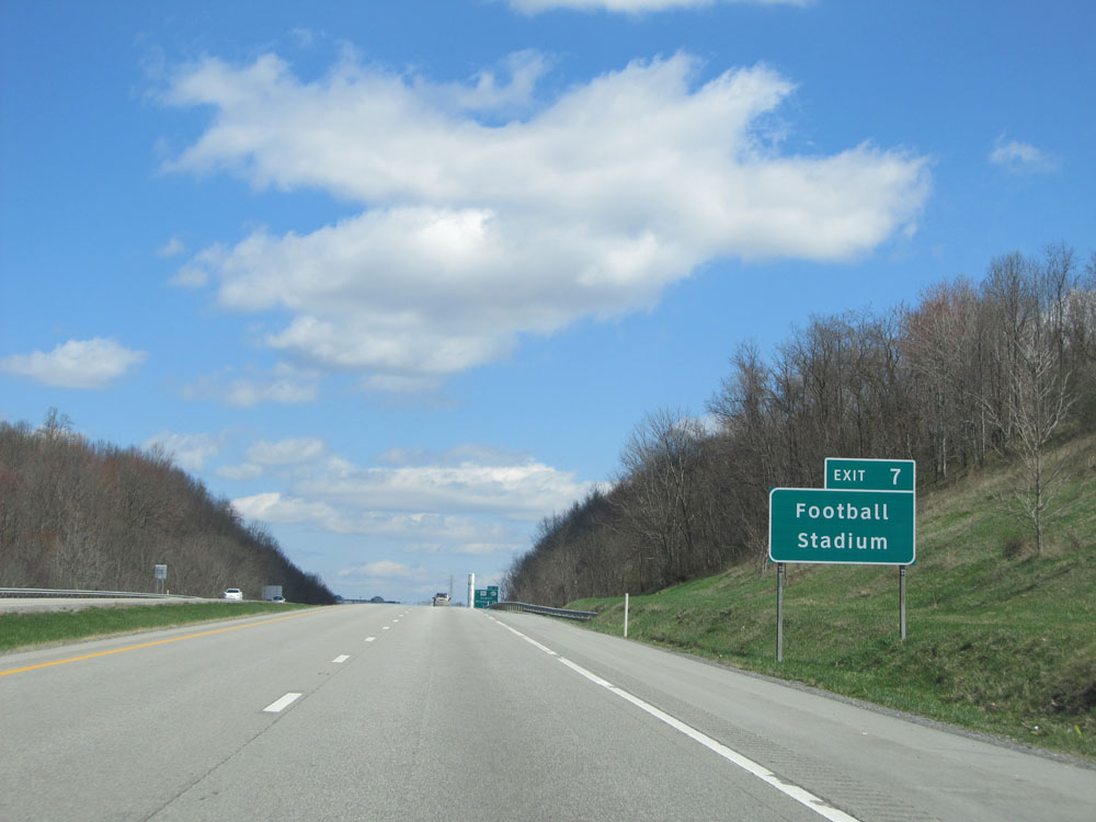 Use Exit 7 to get to the WVU Football Stadium. (Photo taken 4/11/15).