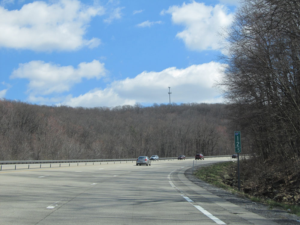 Interstate 68 East: Road view from mile marker 12.5. (Photo taken 4/11/15).