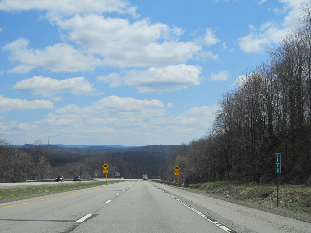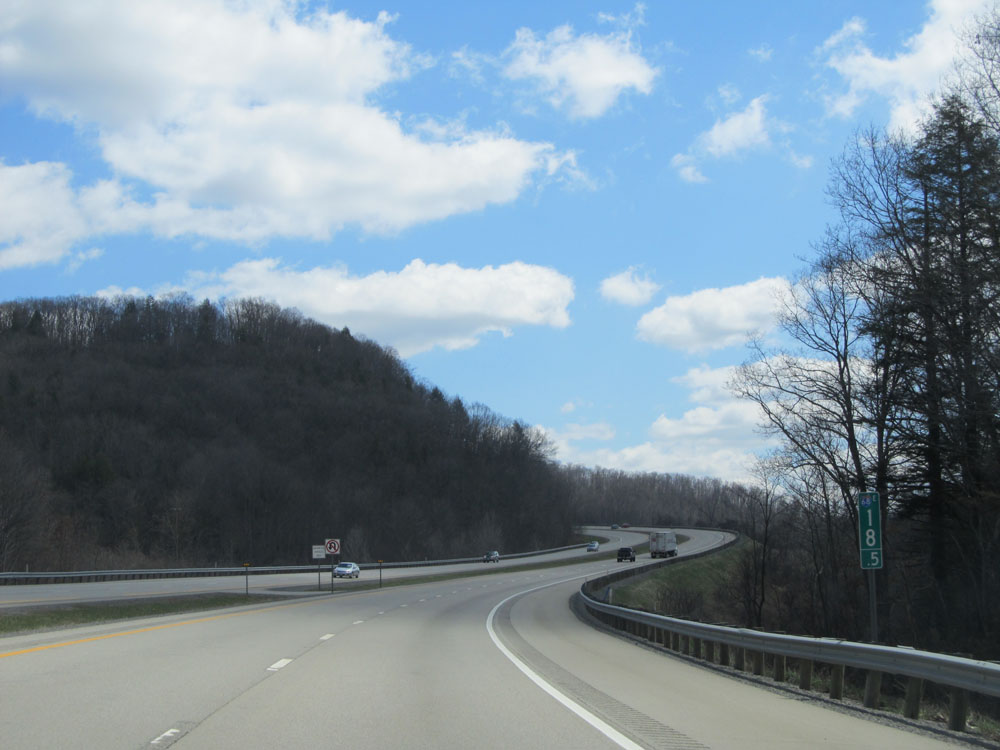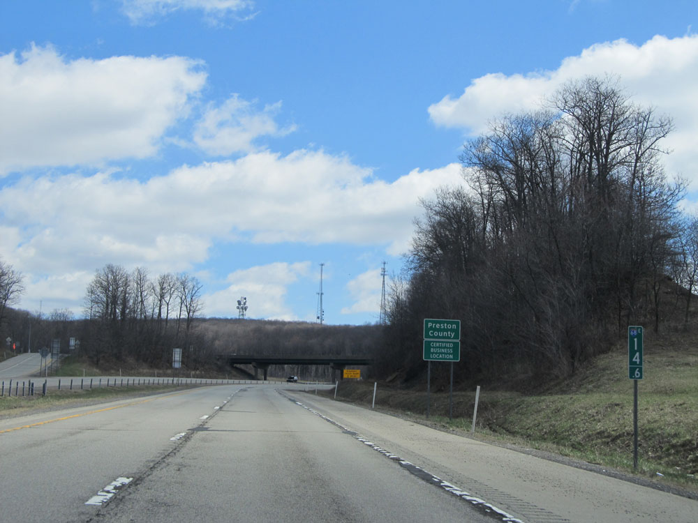 Interstate 68 East as it enters Preston County at mile marker 14.6. (Photo taken 4/11/15).