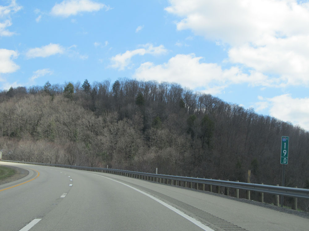 Interstate 68 East: Another road view, with this one being from mile marker 19. (Photo taken 4/11/15).