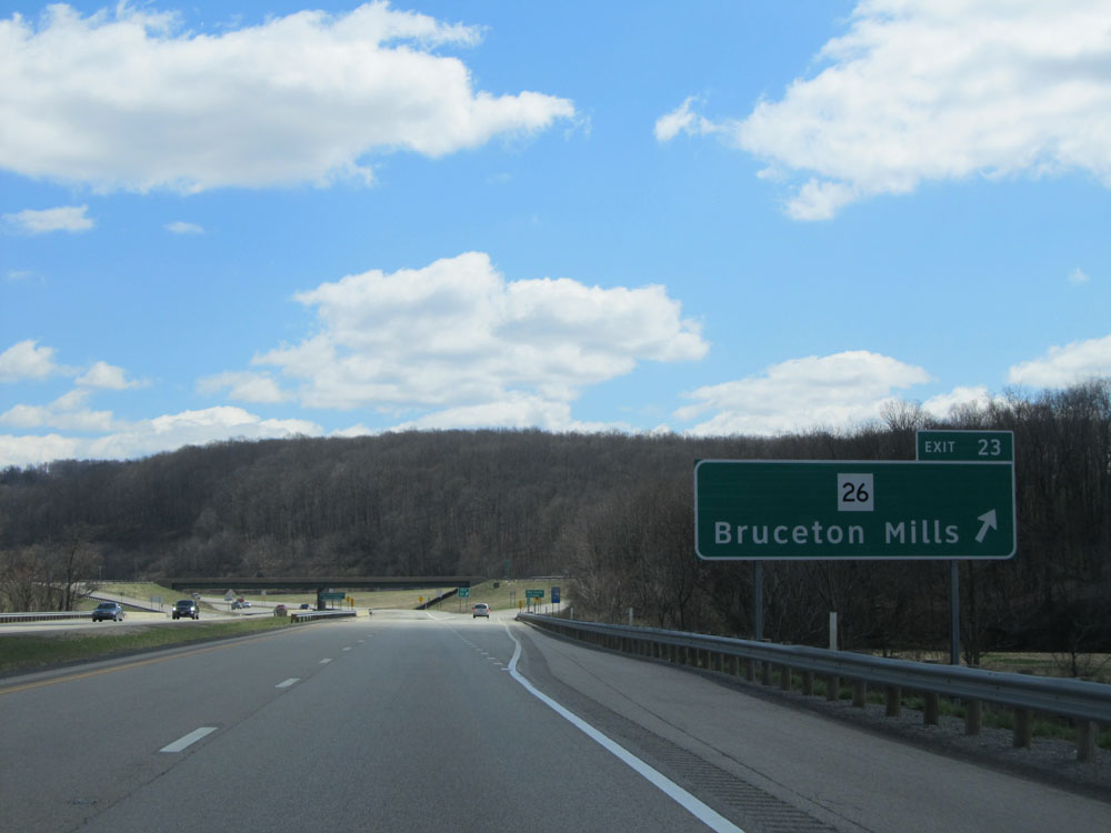Interstate 68 East at Exit 23: WV 26 - Bruceton Mills (Photo taken 4/11/15).