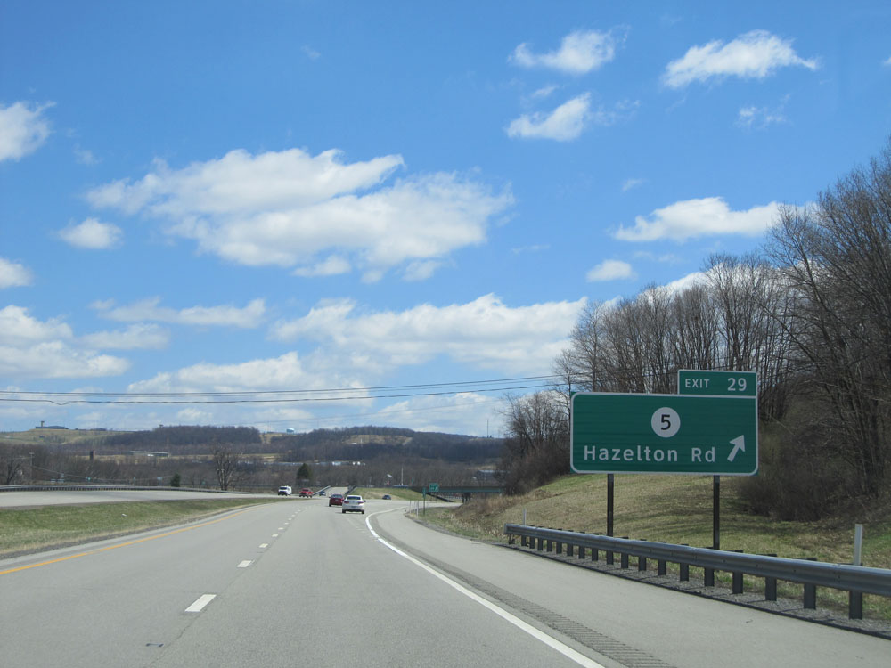 Interstate 68 East at Exit 29: CR 5 - Hazelton Rd (Photo taken 4/11/15).