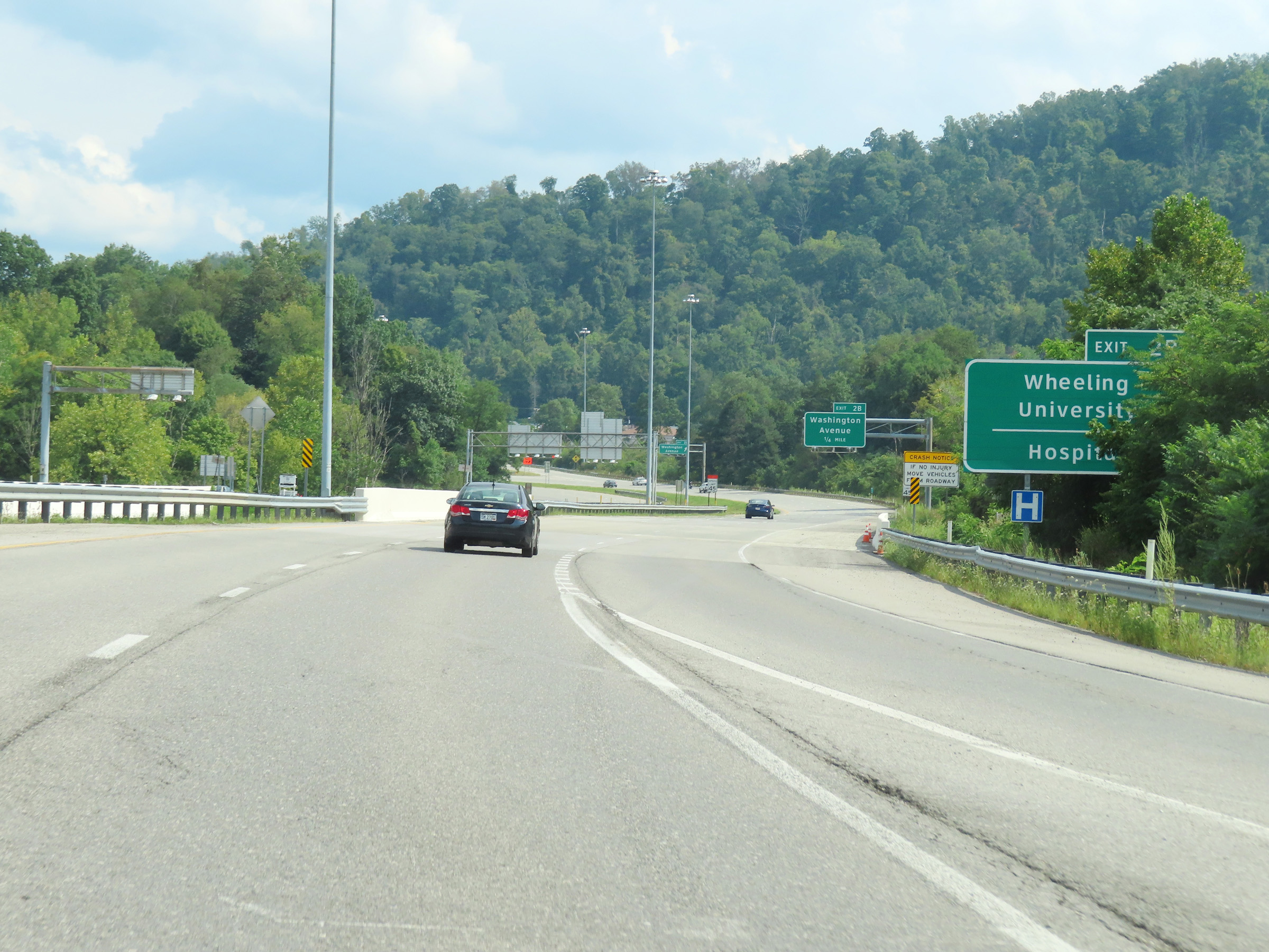 Take Exit 2B to Wheeling University and the Hospital. (Photo taken 8/21/22). |