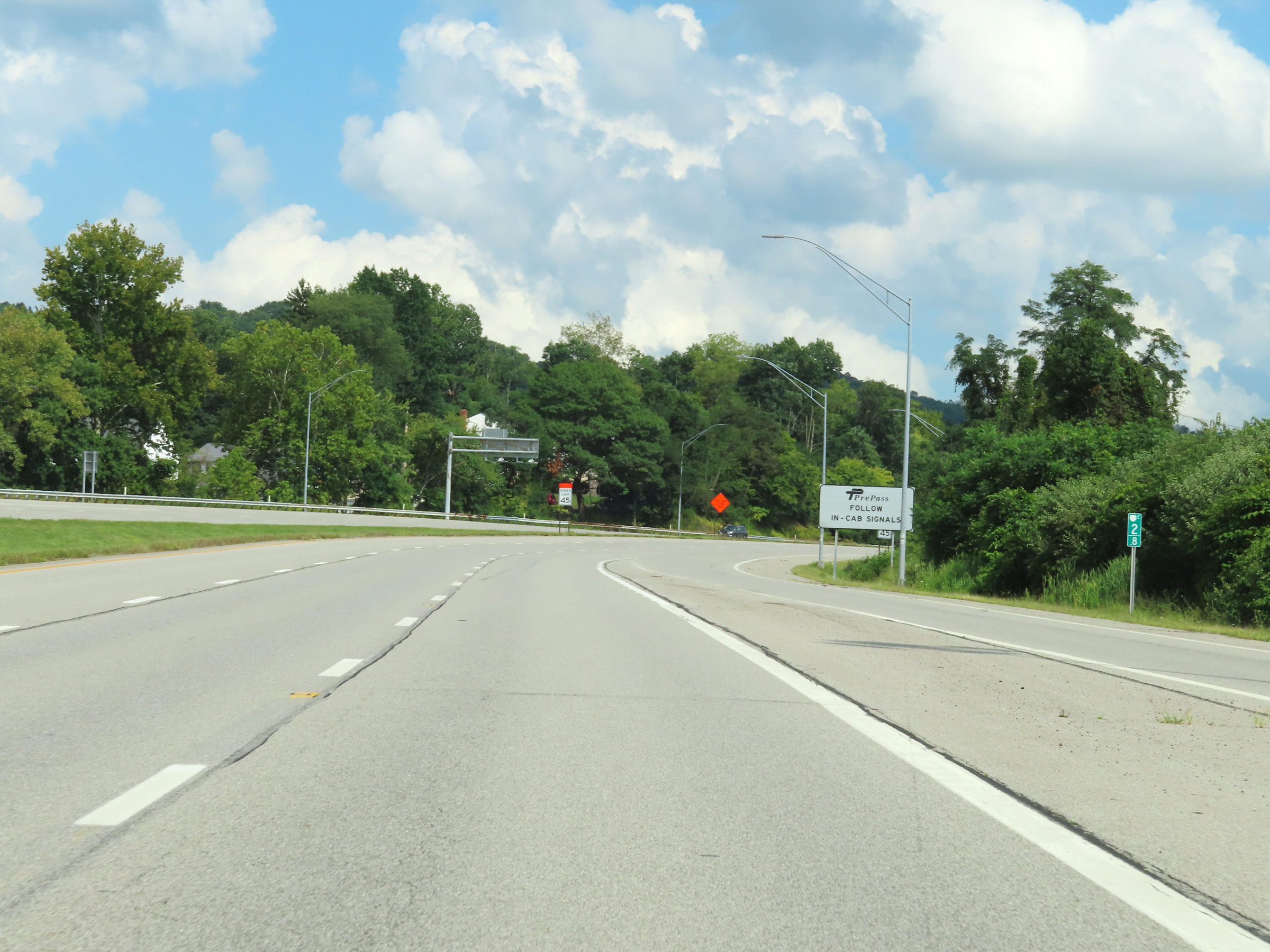 The speed limit on Interstate 70 East in downtown Wheeling and the surrounding area is 45 mph for all traffic. (Photo taken 8/21/22). |