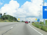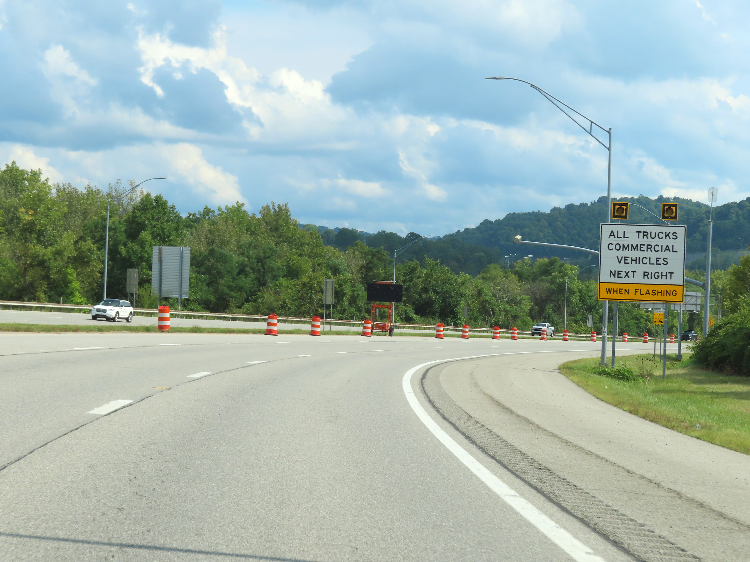 Interstate 70 East as it reaches the top of the grade and the truck climbing lane comes to an end. Thus, so do the truck lane restrictions. (Photo taken 8/21/22). |
