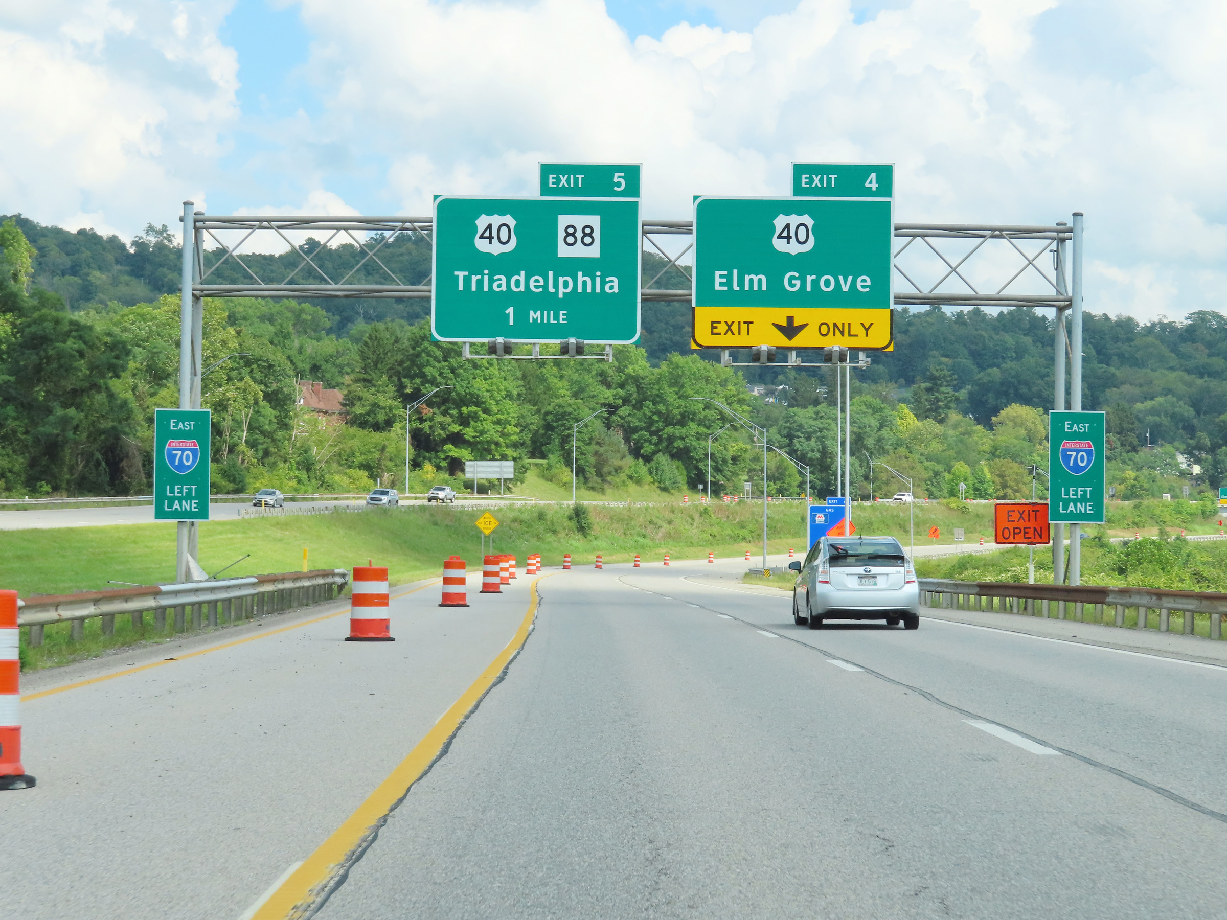 Interstate 70 East at Exit 4: US 40 - Elm Grove (Photo taken 8/21/22). |