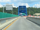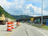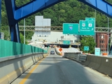 View on Interstate 70 East as it starts across the Fort Henry Bridge over the Ohio River in downtown Wheeling. On the other side of the bridge, I-70 East will enter the Wheeling Tunnel. (Photo taken 8/21/22). |