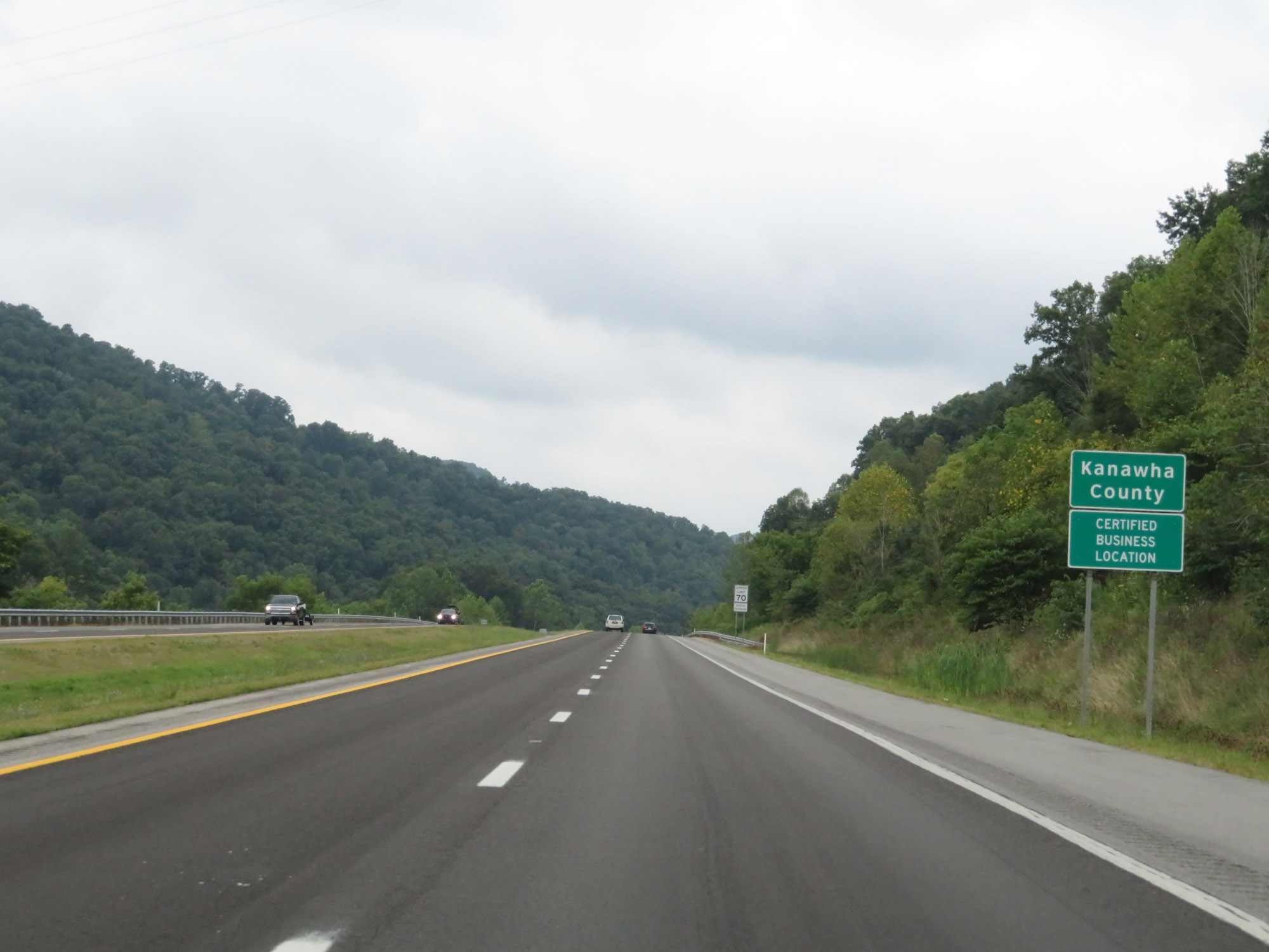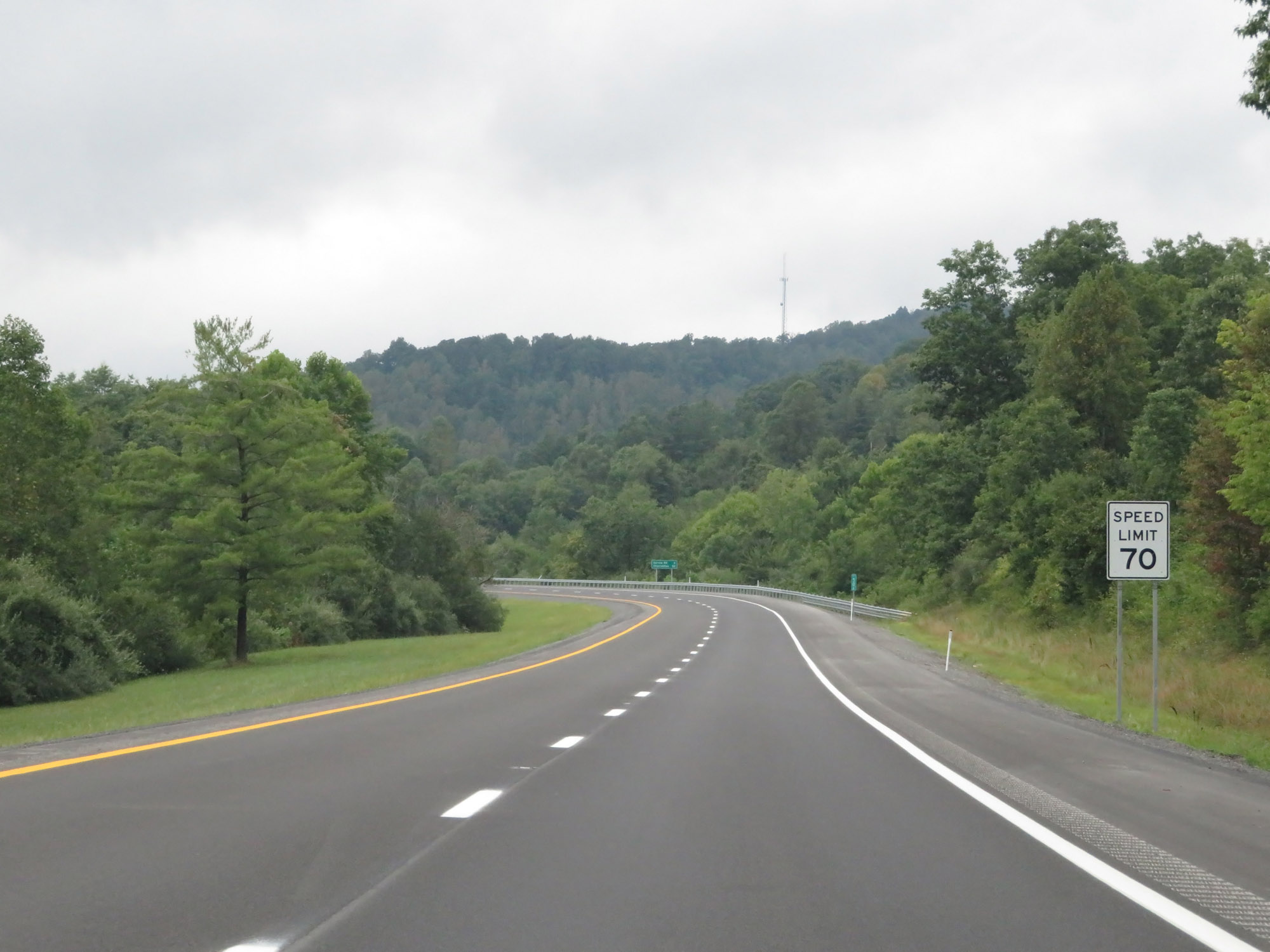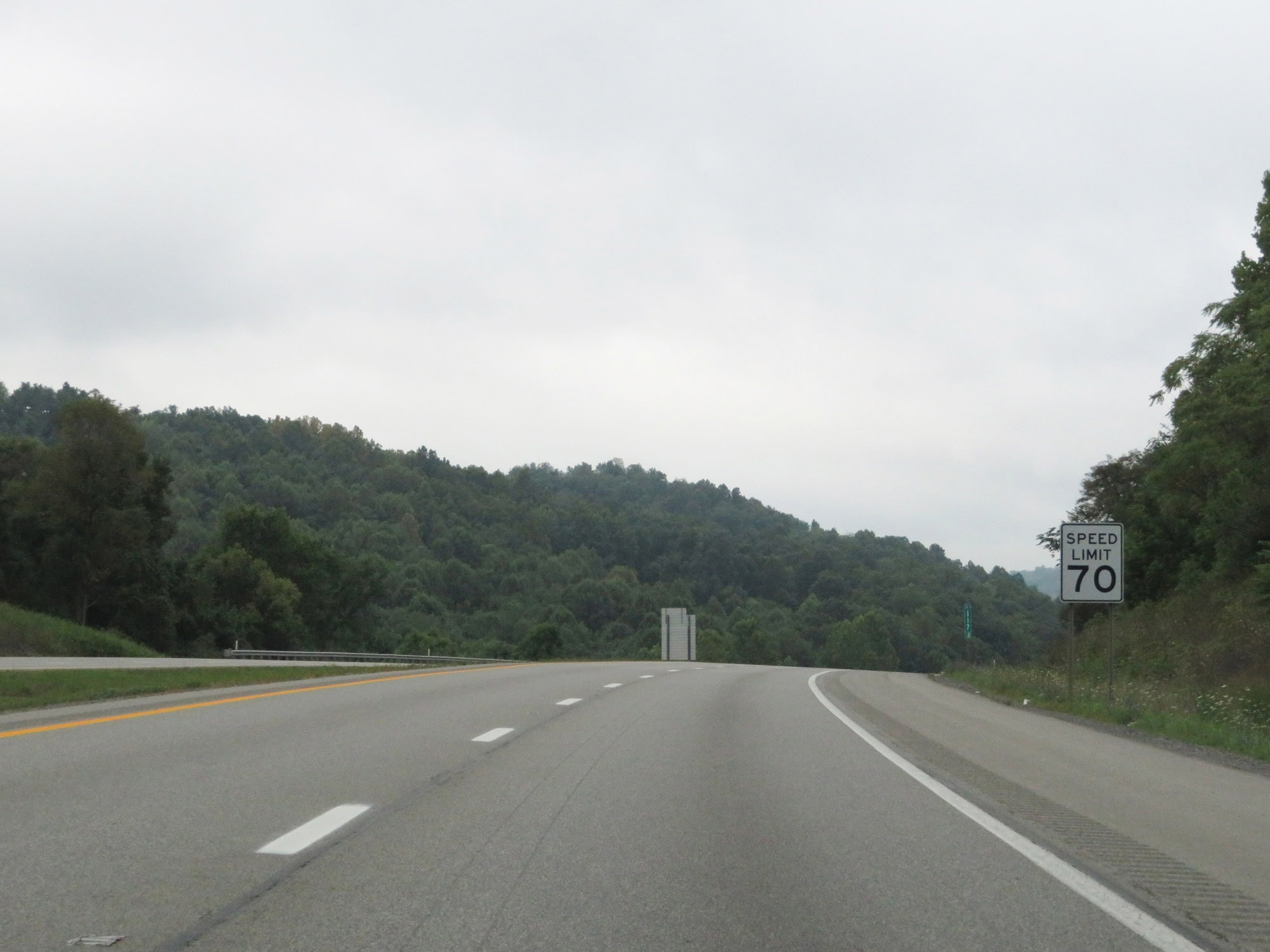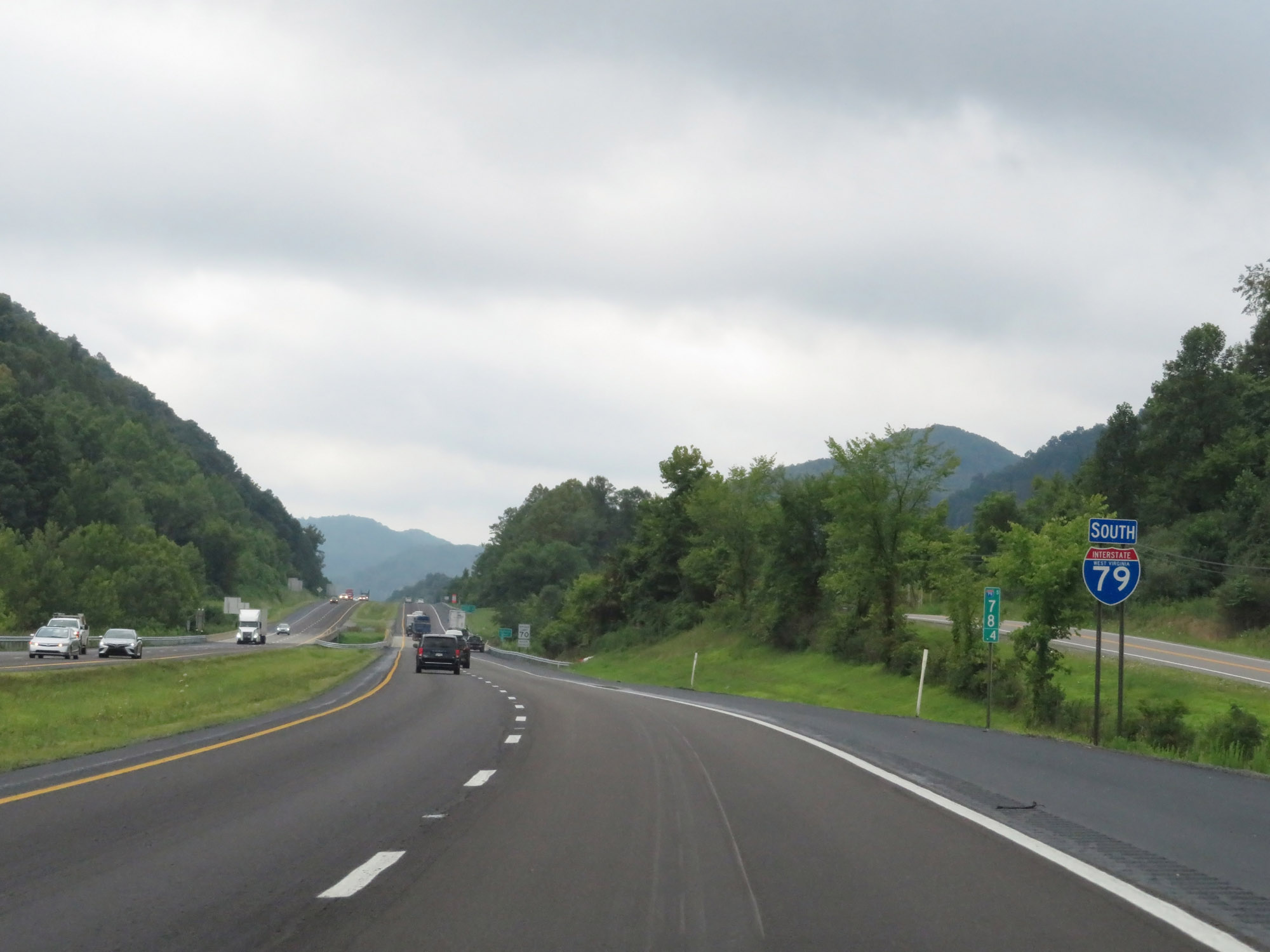 The speed limit on Interstate 79 South starts out at 70 mph, which is the standard speed limit on most rural Interstate highways in West Virginia. (Photo taken 8/9/19). |