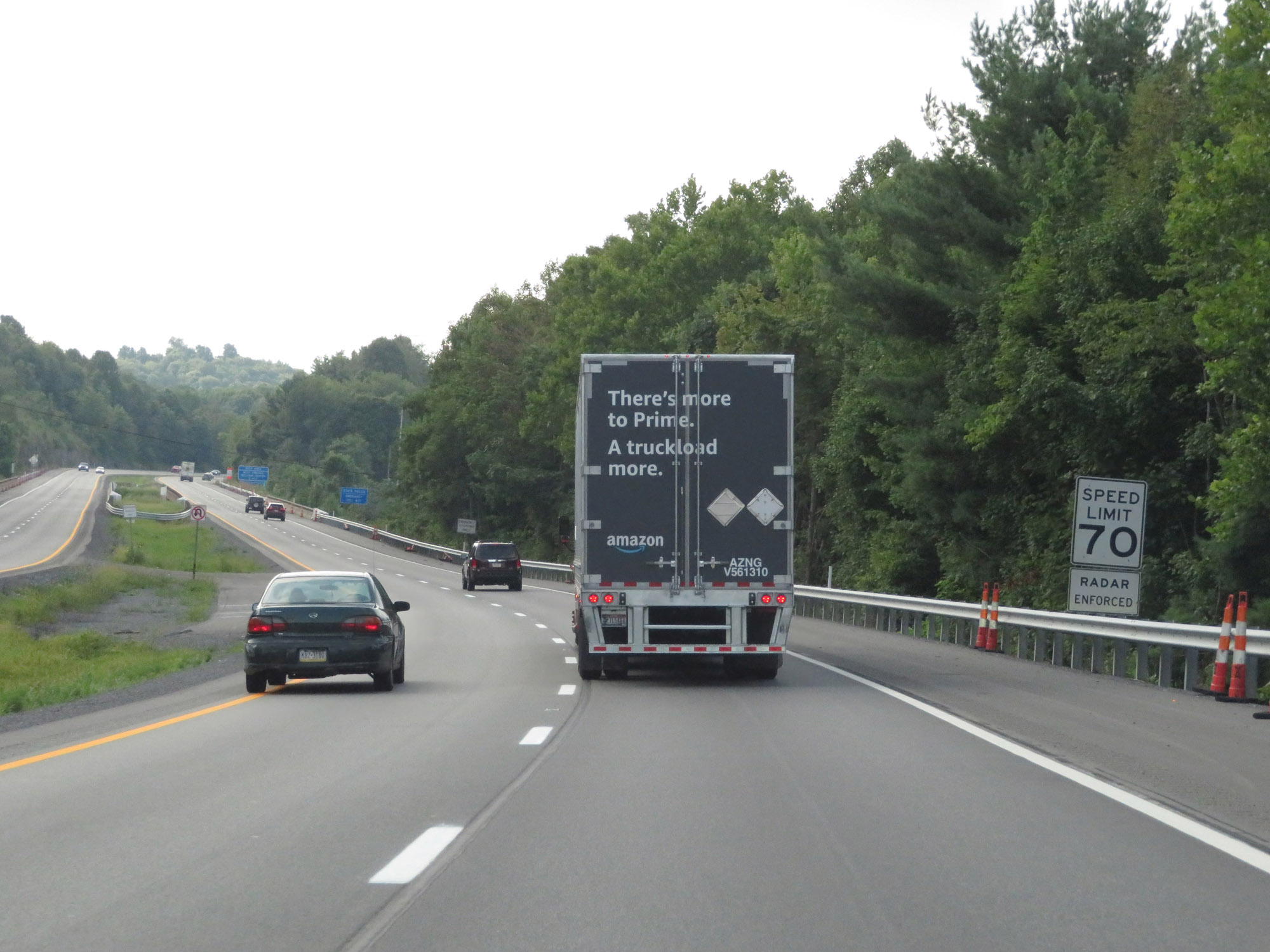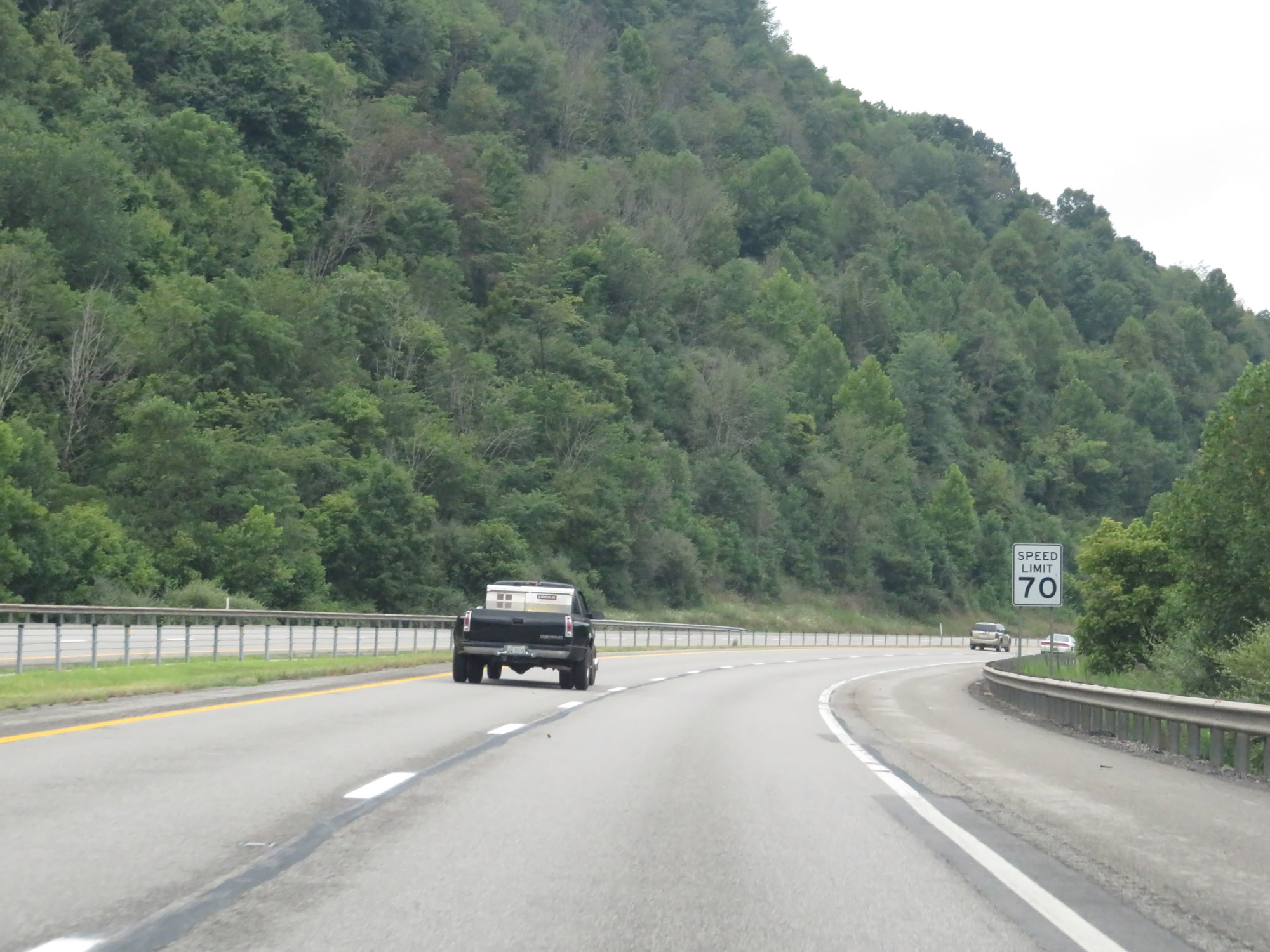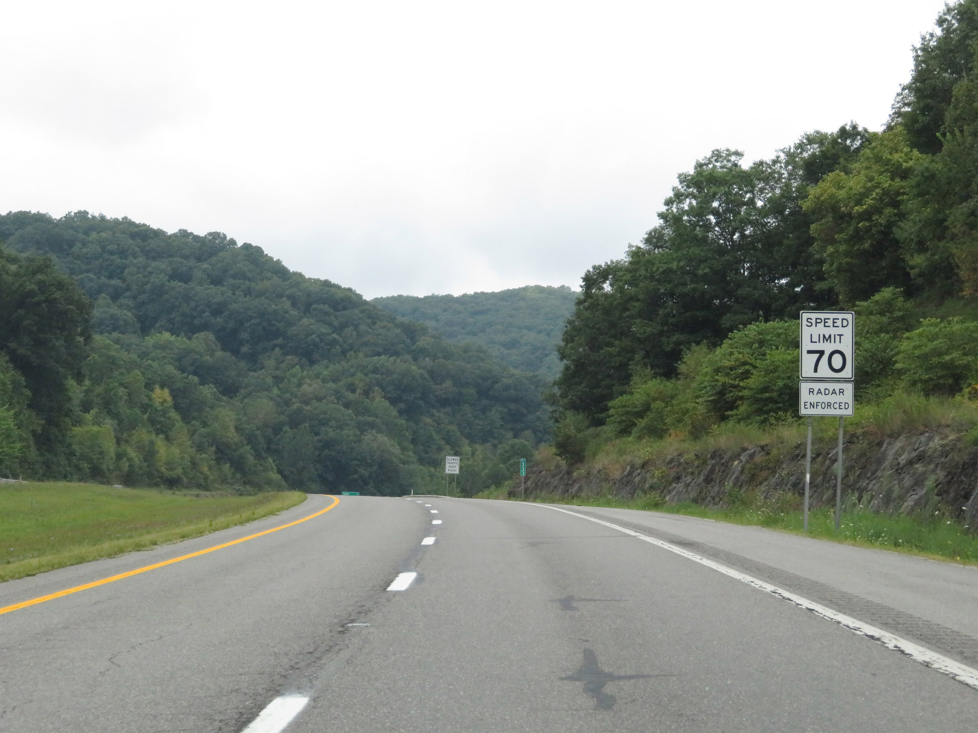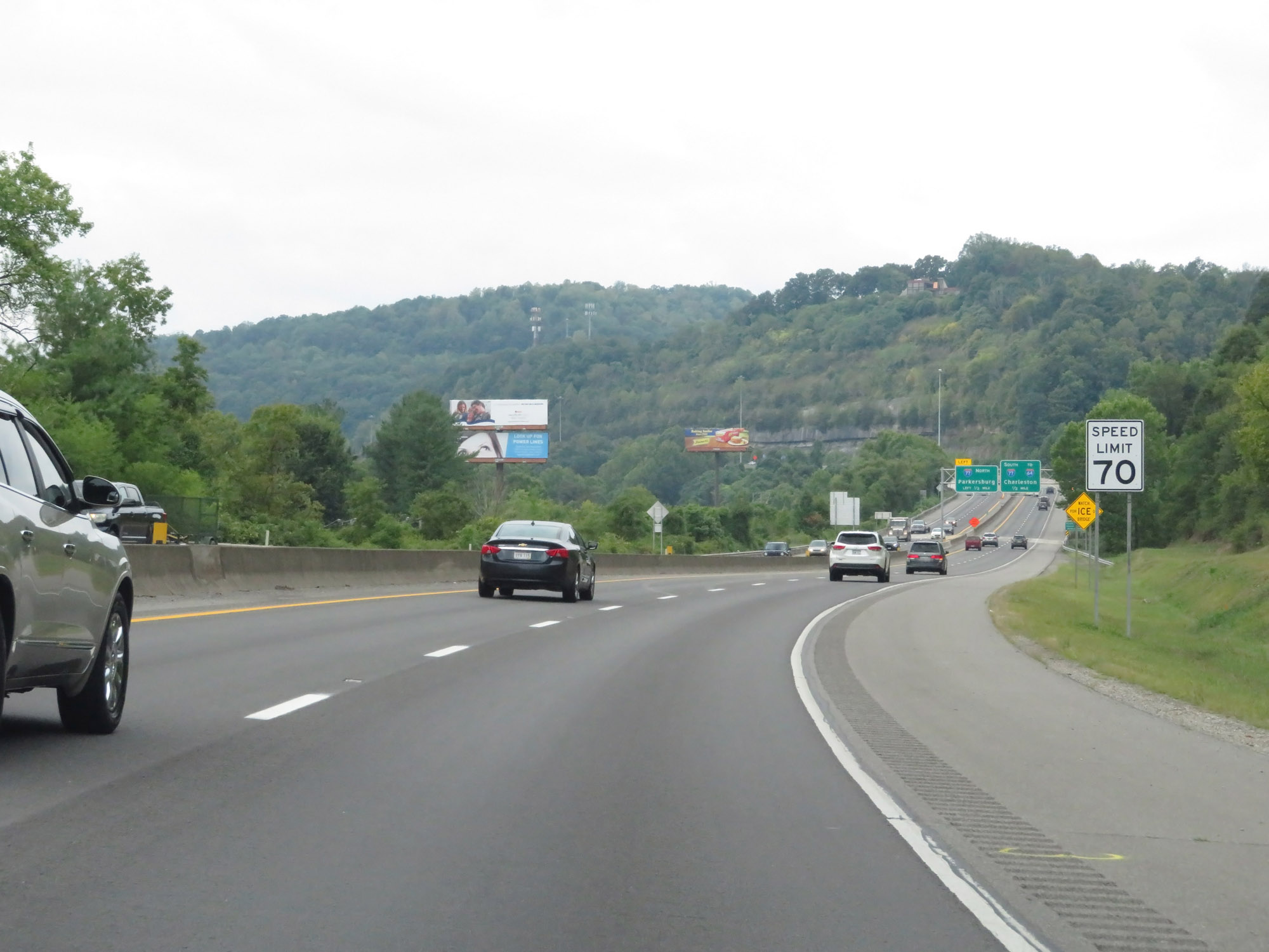The speed limit on Interstate 79 South starts out at 70 mph, which is the standard speed limit on most rural Interstate highways in West Virginia. (Photo taken 8/9/19). |