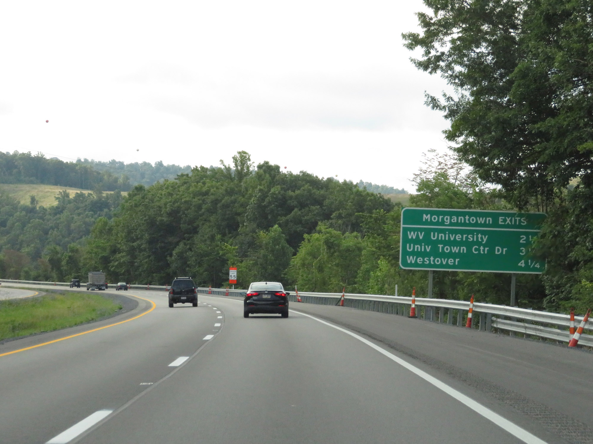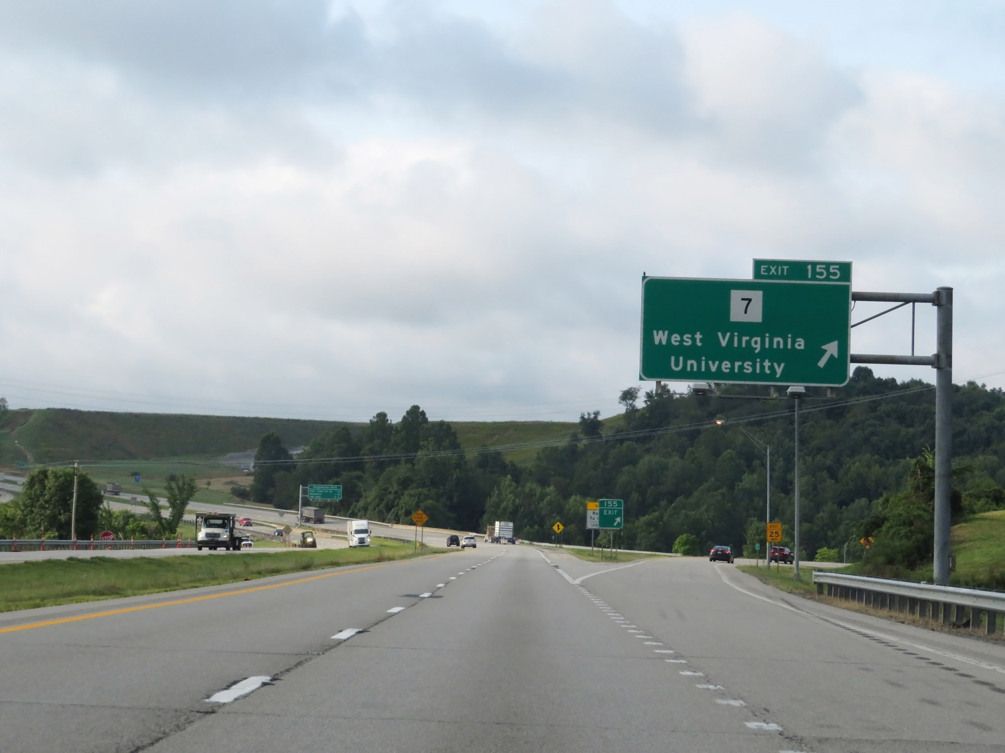 Interstate 79 South at Exit 155: WV 7 - West Virginia University (Photo taken 8/9/19). |