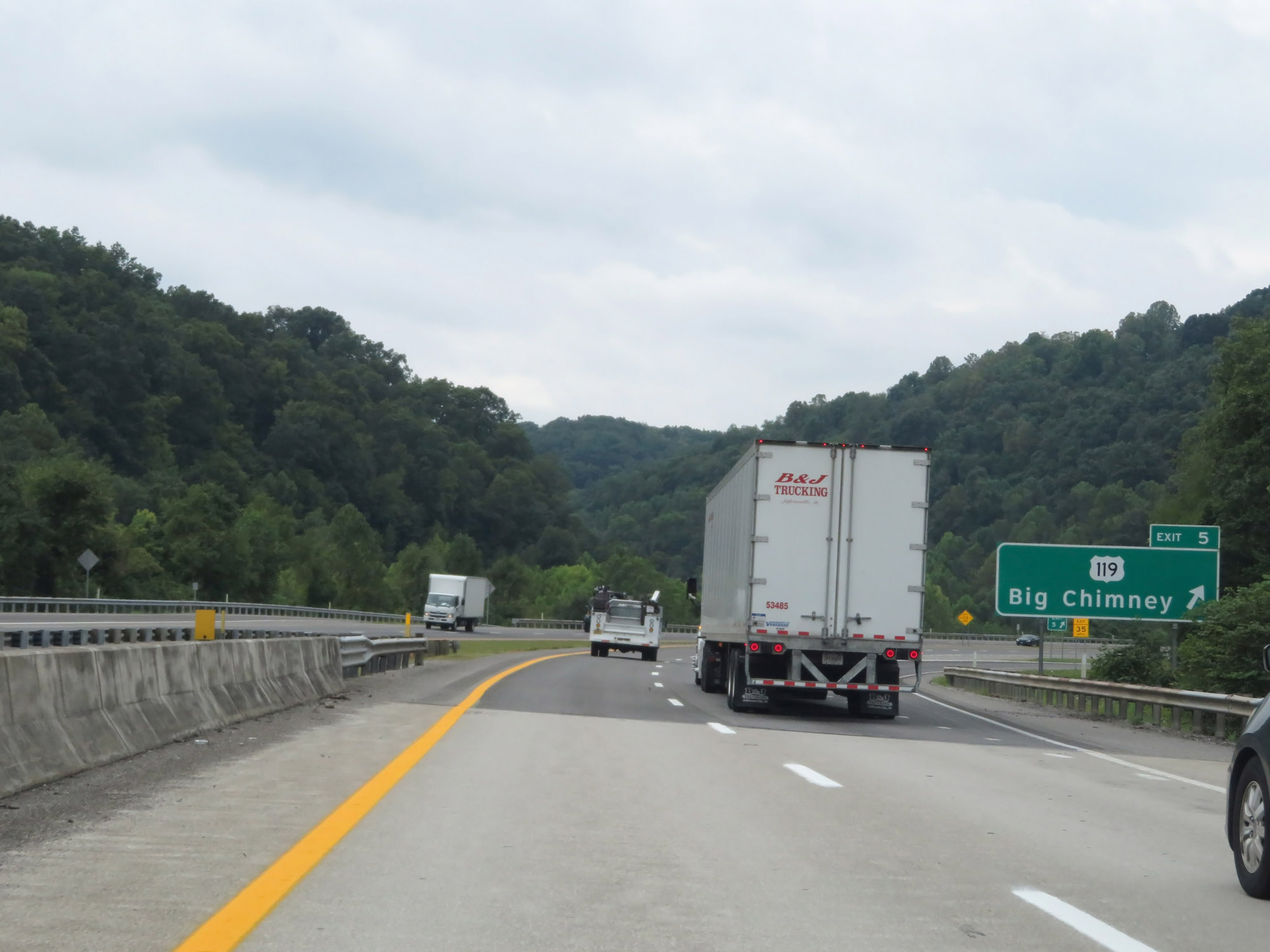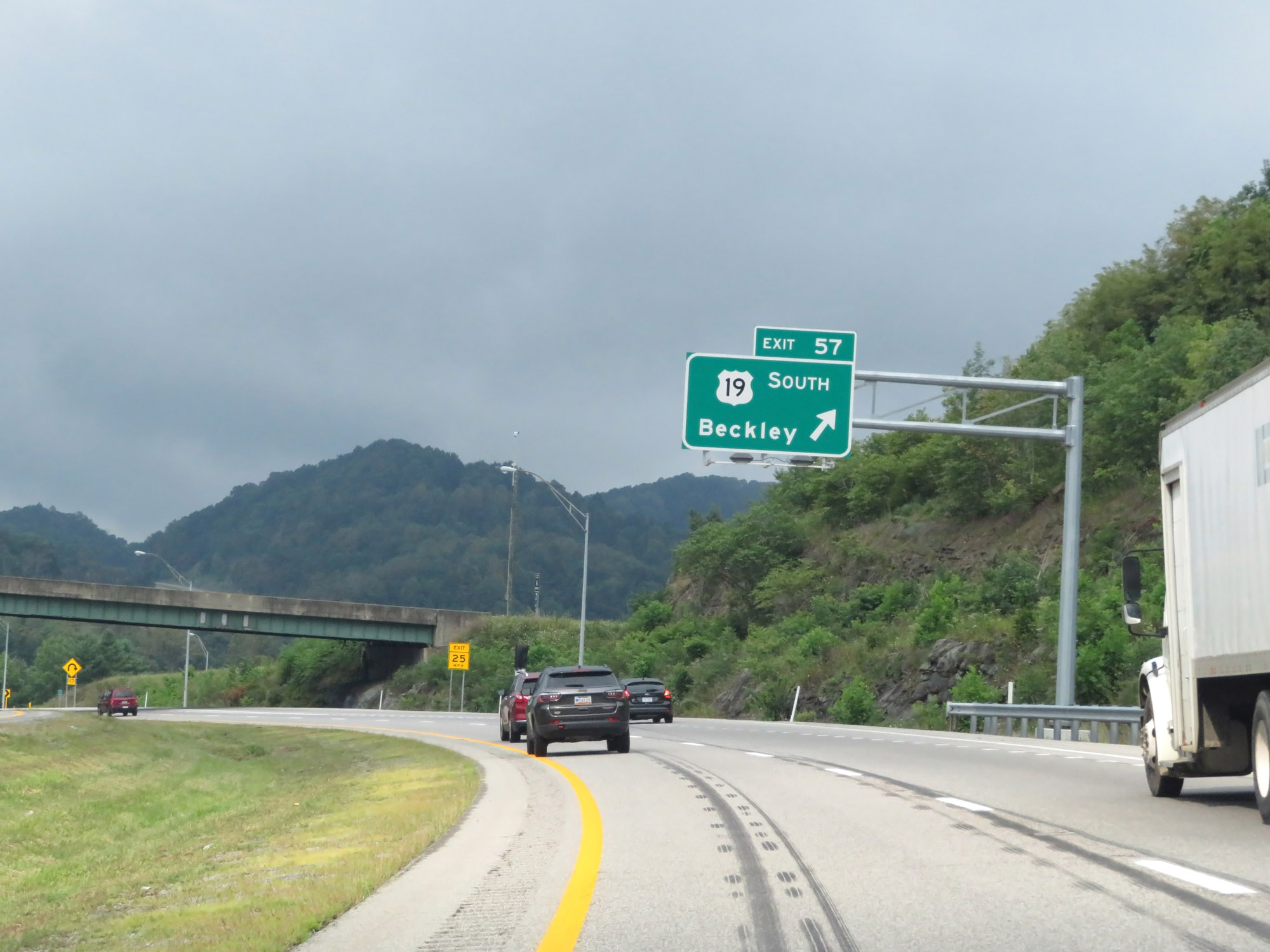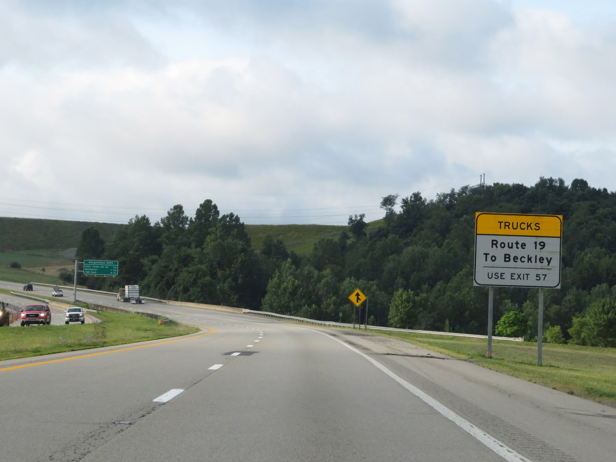 Trucks headed to Beckley via US 19 South should remain on Interstate 79 South to Exit 57. (Photo taken 8/9/19). |