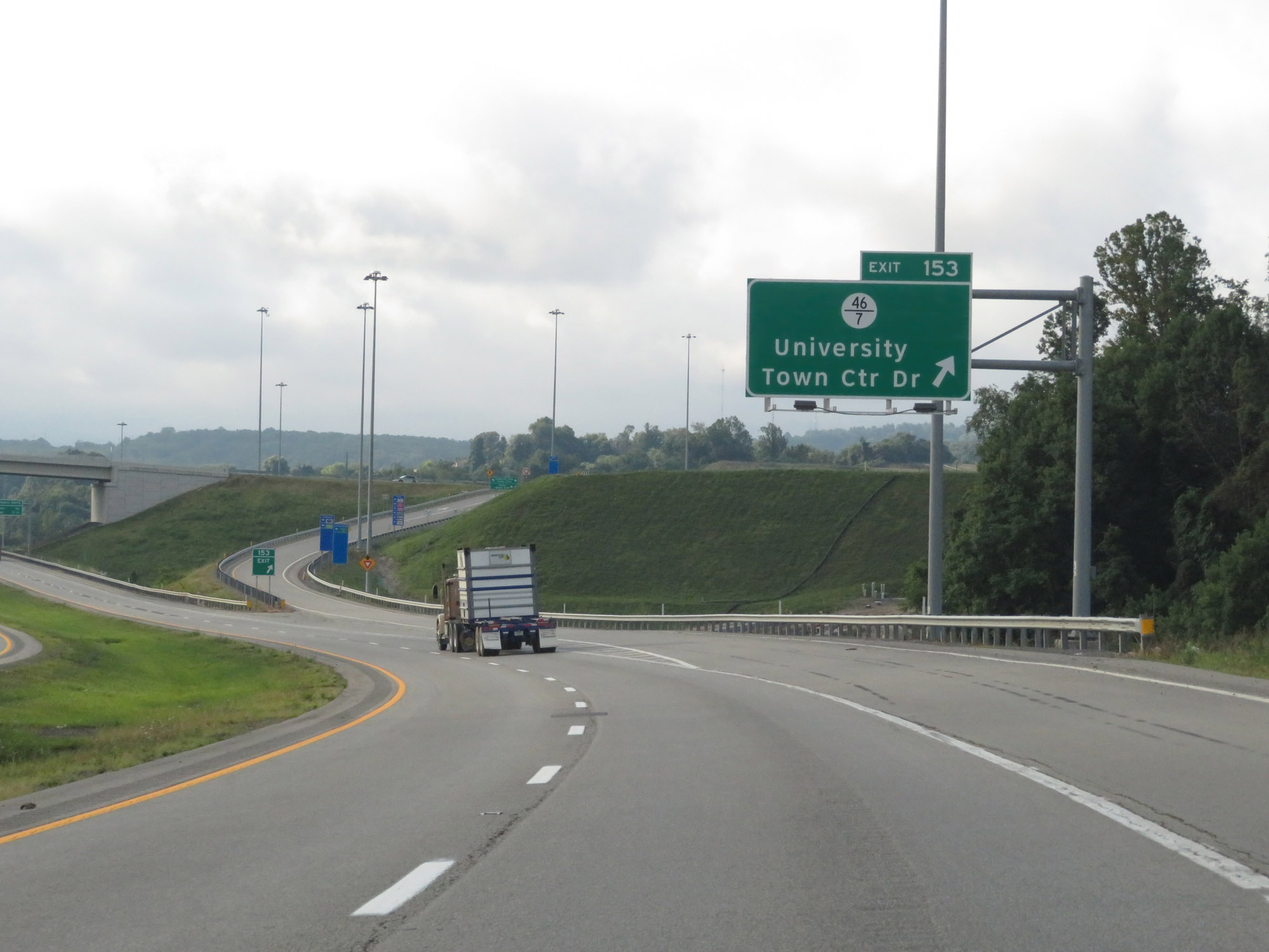 Interstate 79 South at Exit 153: CR 46/7 - University Town Center Dr (Photo taken 8/9/19). |