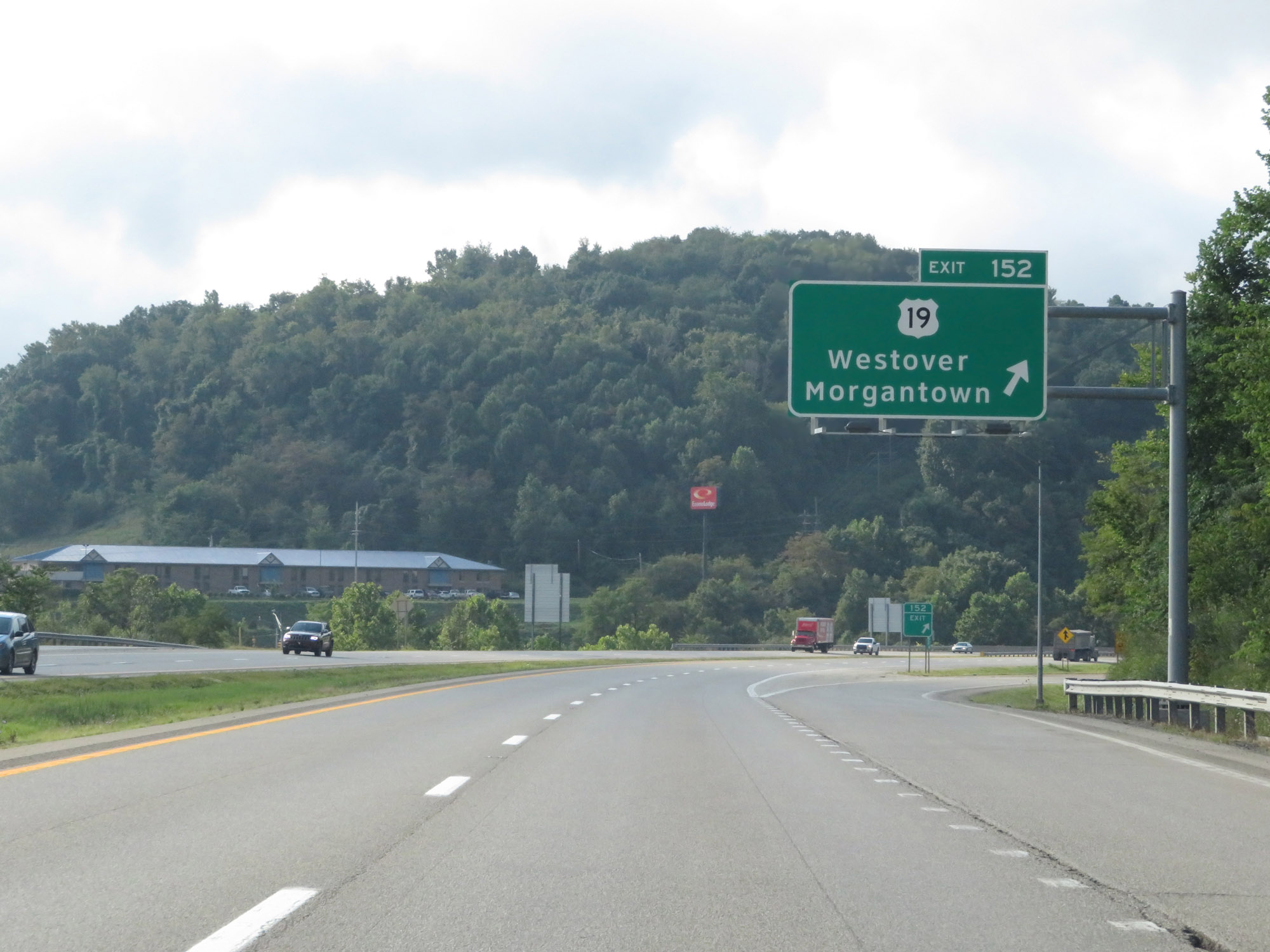 Interstate 79 South at Exit 152: US 19 - Westover / Morgantown (Photo taken 8/9/19). |