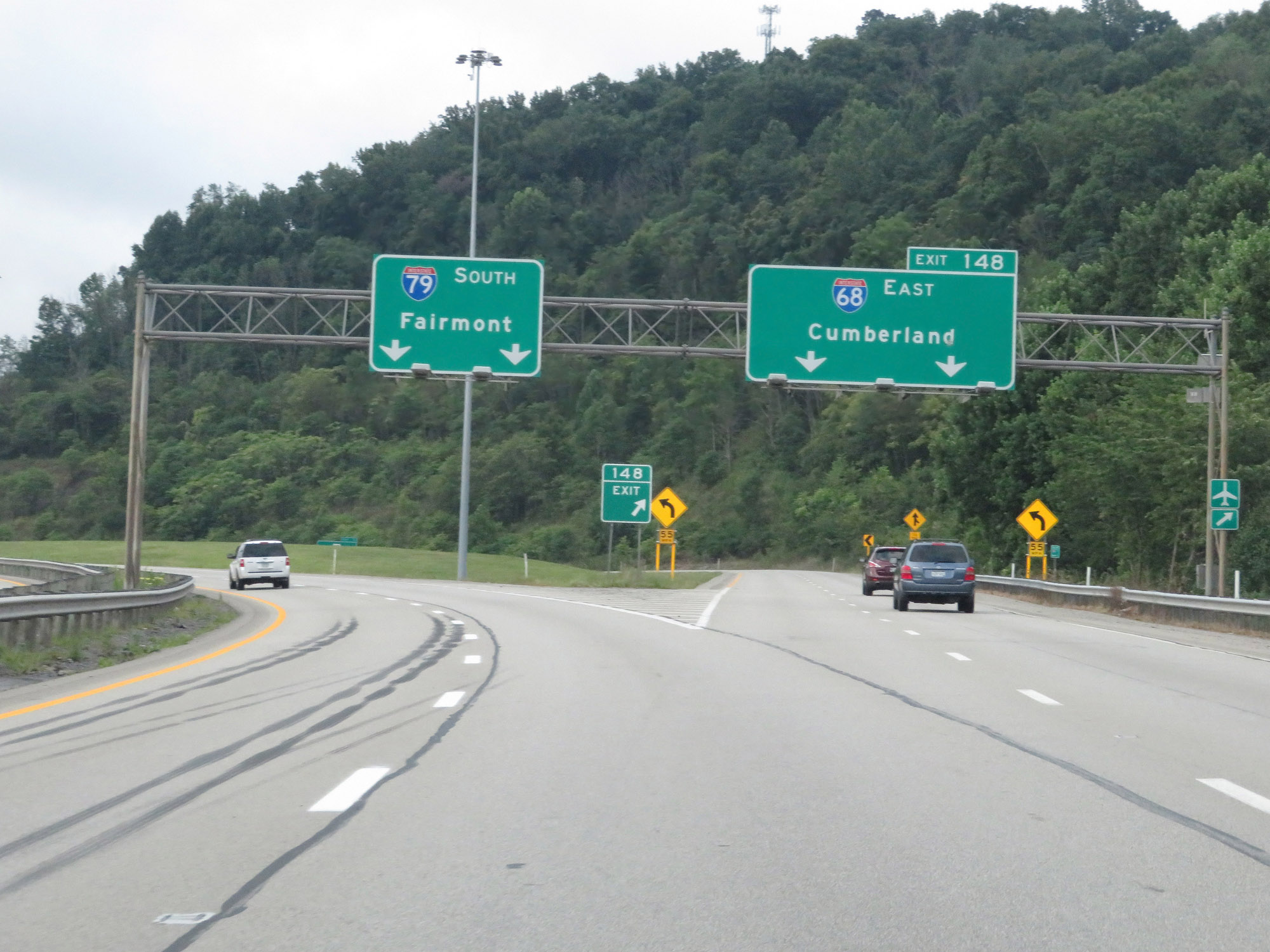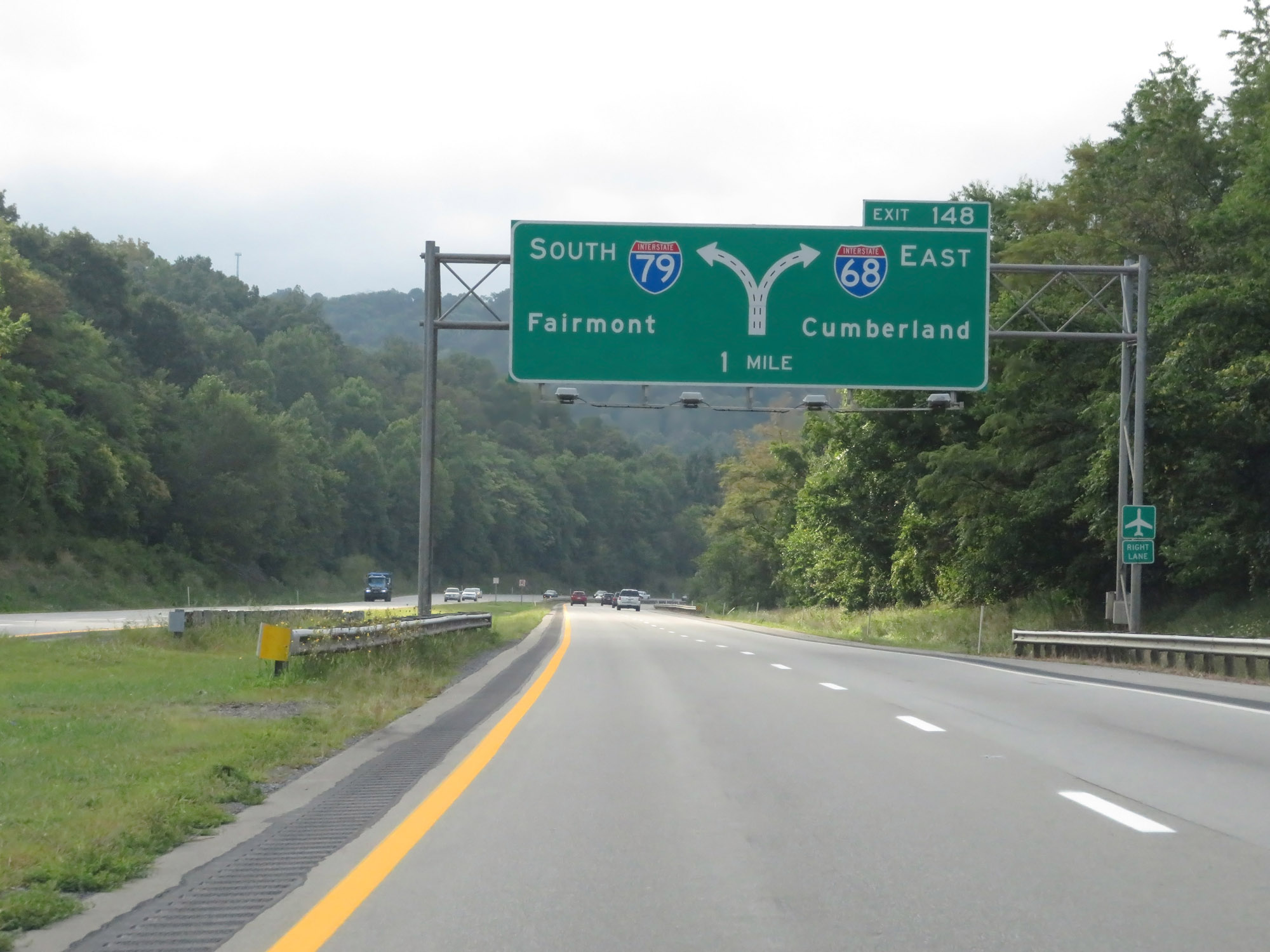 Interstate 79 South at Exit 148: Interstate 68 East - Cumberland (Photo taken 8/9/19). |