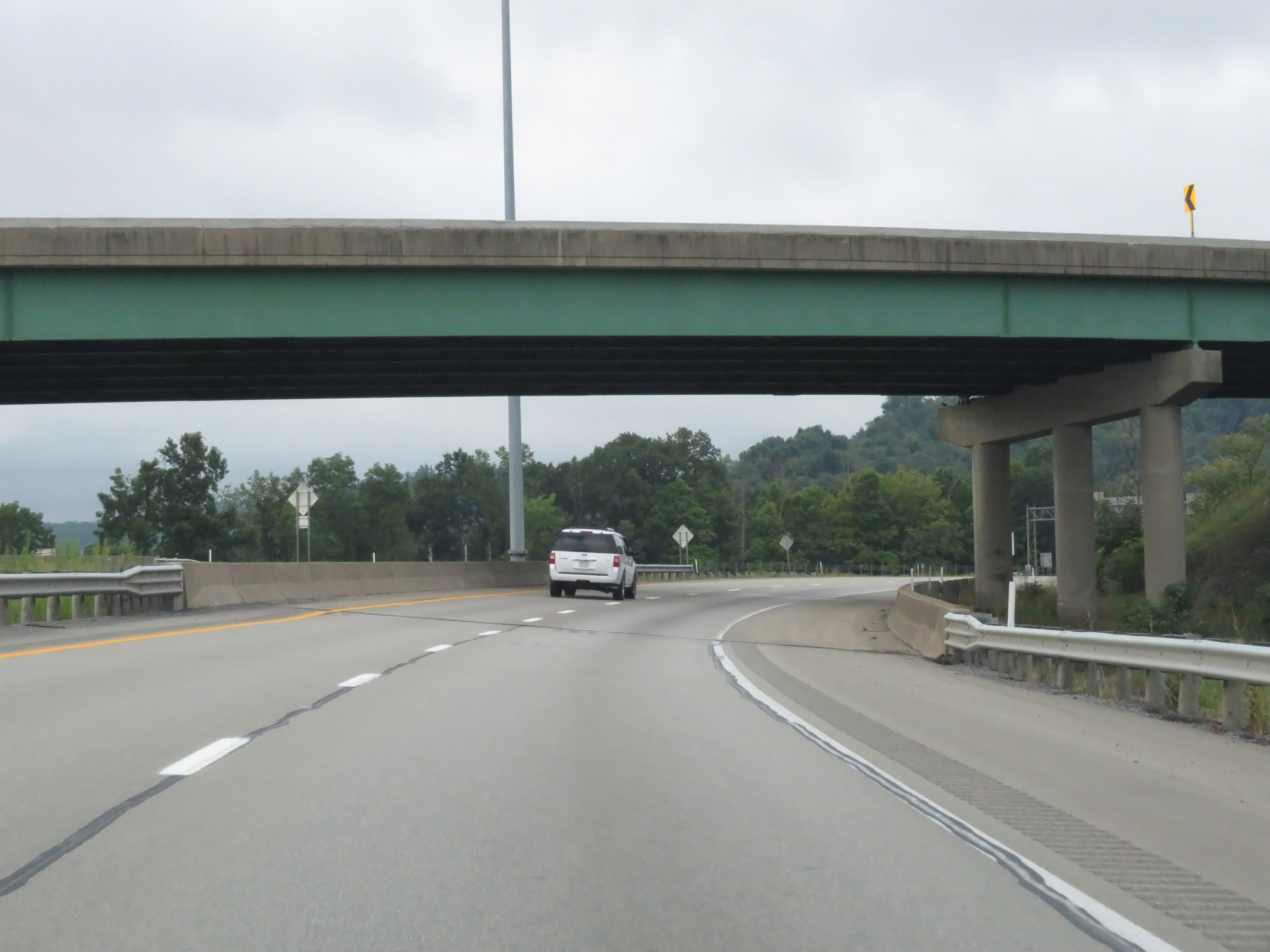 Interstate 79 South as it passes under the ramp from Interstate 68 West to I-79 South. (Photo taken 8/9/19). |